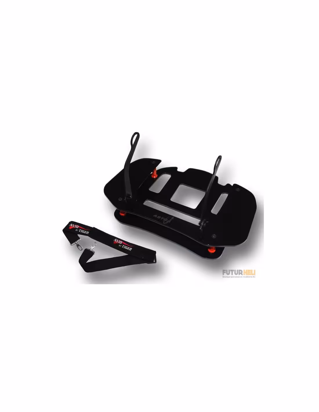 Ce pupitre permet au piloter en "pinçant" les manches de l'émetteur et en posant la main . Il est adapté à la radio-commande 14SG Futaba.il est fabriqué en en polyéthylène et aluminium la sangle de cou est fournie.