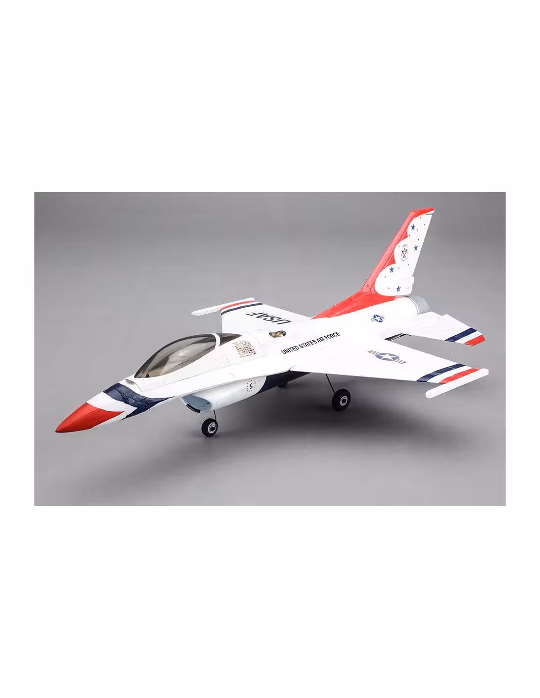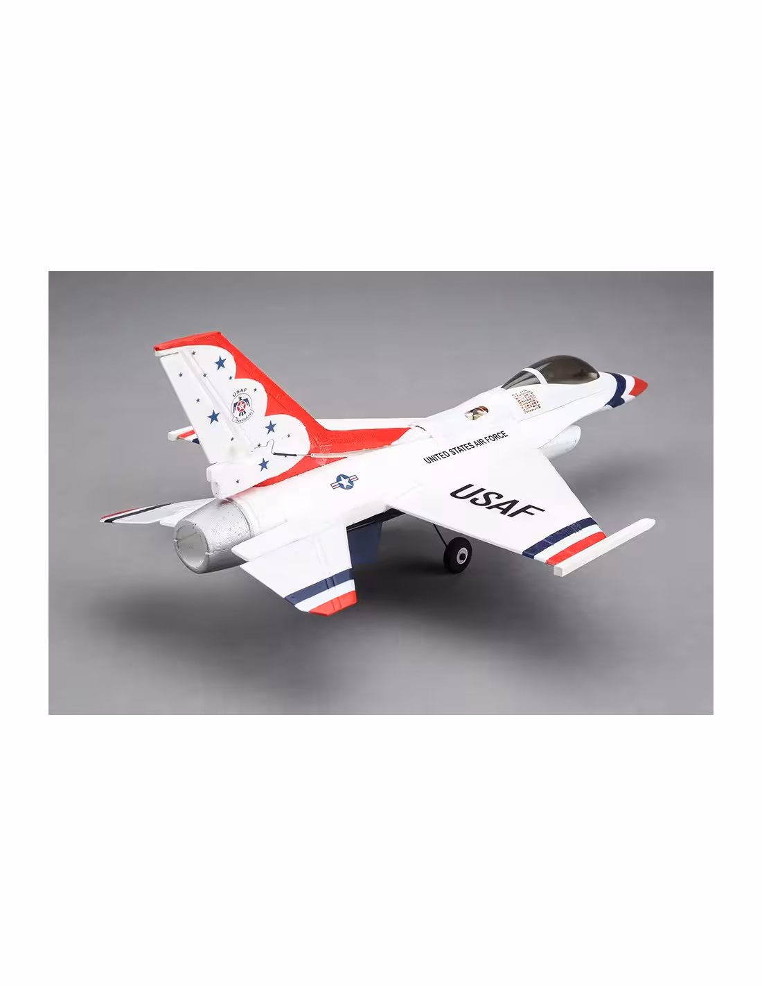 - L’UMX F-16 E-flite® est un jet à turbine au format Ultra-micro reproduit sous licence Lockheed Martin et livré entièrement assemblé. Vous apprécierez la précision de ses commandes avec sa dérive fonctionnelle et les stabilisateurs pendulaires assurent la fonction de profondeur et d’ailerons. La roulette de nez vous facilitera les manœuvres au sol vous permettant d’assurer le spectacle depuis le démarrage, jusqu’à l’arrêt. Dans les airs, la technologie AS3X d’avant-garde vous donnera l’impression de piloter un jet de taille supérieure réglé par un expert.