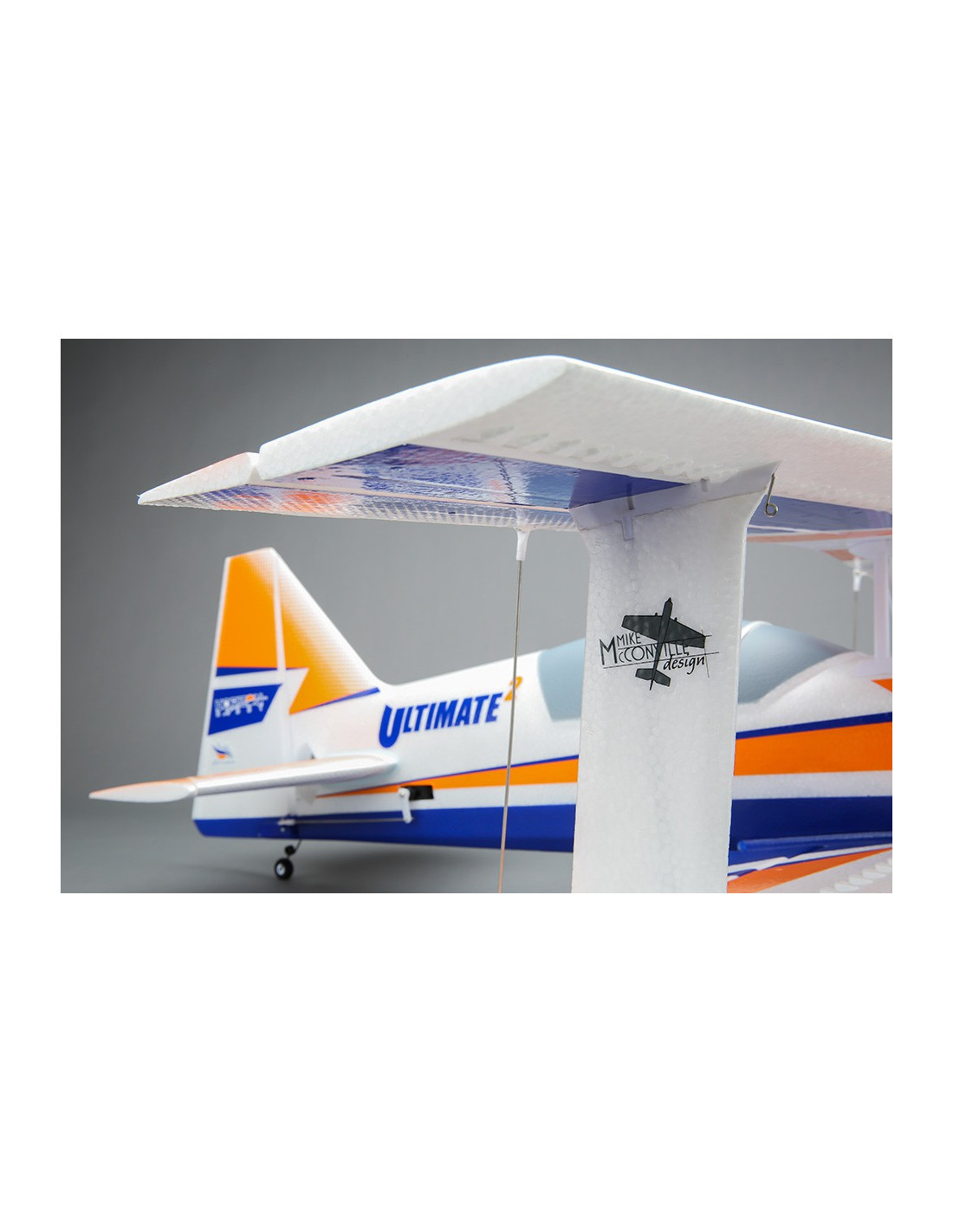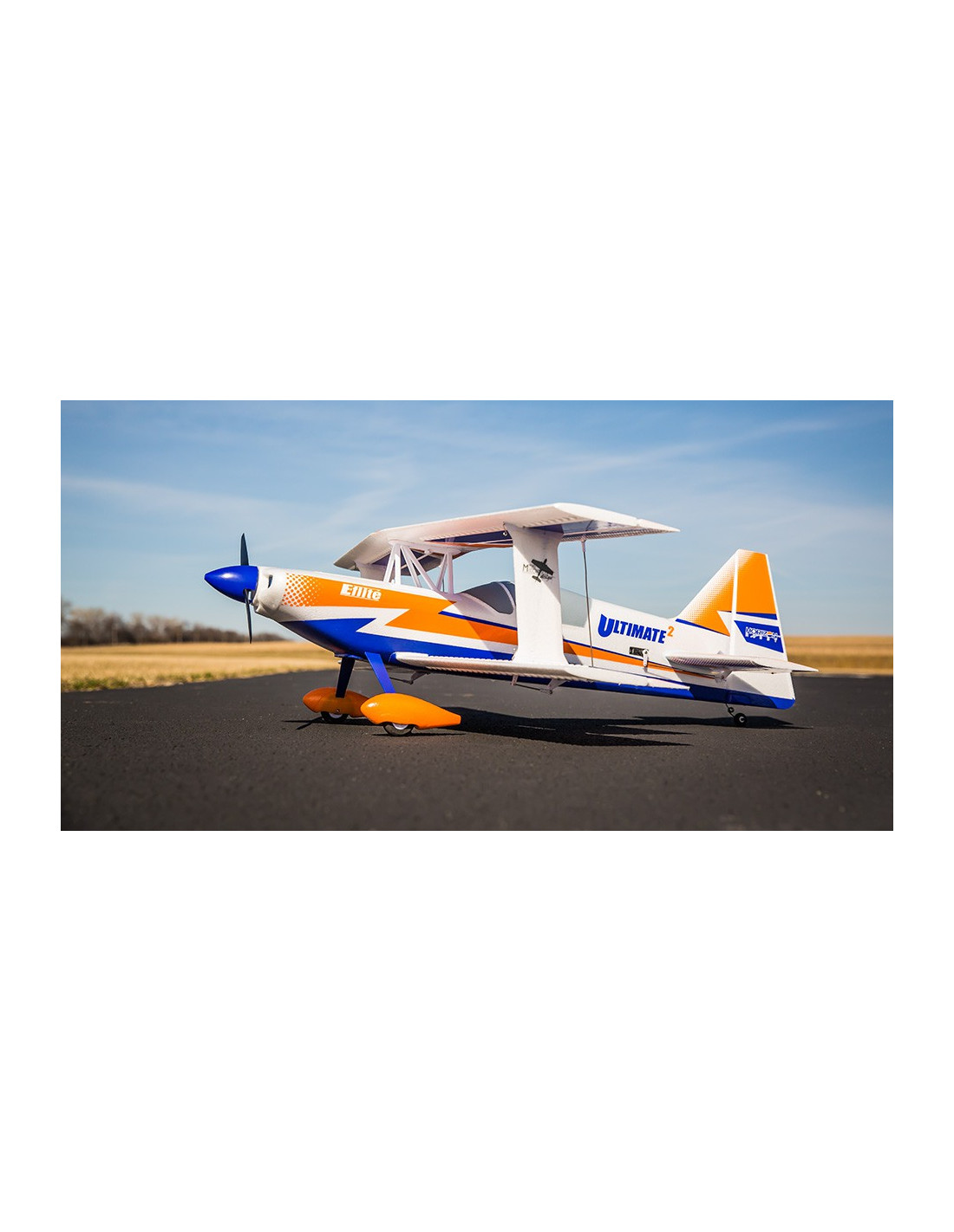 - Le Biplan E-flite® Ultimate 2 est le choix idéal pour les pilotes à la recherche d’une nouvelle expérience acrobatique. Basé sur le modèle original, ce nouveau park flyer possède une aérodynamique travaillée et une décoration dynamique signée Mirco Pecorari de chez Aircraft Studio Design. Son rapport masse/puissance couplé à son aérodynamique moderne transforme ce biplan en machine de vol 3D. Les 4 ailerons gigantesques et les empennages surdimensionnés lui donnent une allure sauvage et de grandes capacités acrobatiques. Le récepteur AR636A inclus possède la technologie AS3X et est spécialement programmé pour ce modèle offrant ainsi un niveau de précision jamais atteint. Si lors d’une figure de voltige comme un Harrier par exemple, vous vous sentez en difficulté, activez le mode Panique et l’avion reprendra une attitude de vol sûre.