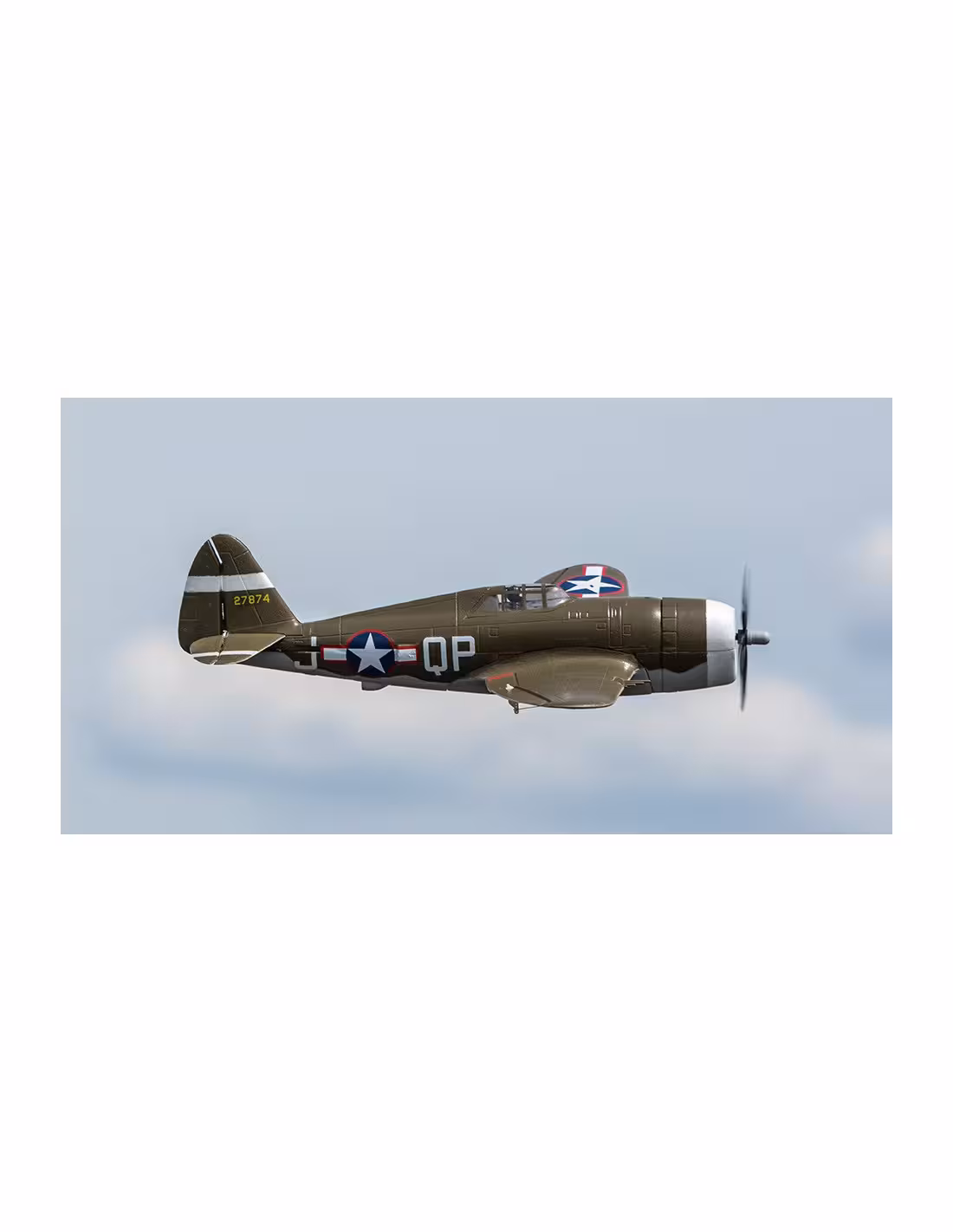 - Le modèle E-flite® UMX P-47 BL est conçu pour les fans d’avion de combat qui recherchent une version à échelle ultra-micro. Son apparence réaliste et détaillée est alliée à une structure en mousse légère. Il est équipé d’un moteur brushless à cage tournante, d’une hélice quadripale et est compatible avec une batterie Li-Po 2S. Vous pouvez laisser son train d’atterrissage amovible et utiliser sa roulette de queue directionnelle pour une excellente maniabilité au sol pour les pistes en dur. Cette réplique rend hommage par ses performances au P-47C du Major Howard D. « Deacon » Hively et vous offre la possibilité d’atterrir délicatement sur l’herbe lorsque le train d’atterrissage est retiré. Mais peu importe votre niveau de pilotage, la technologie AS3X vous permet de piloter ce warbird comme un modèle grande échelle réglé par des experts. Incroyable contrôle, performances exceptionnelles, c’est l’ultra-micro warbird que vous attendiez.