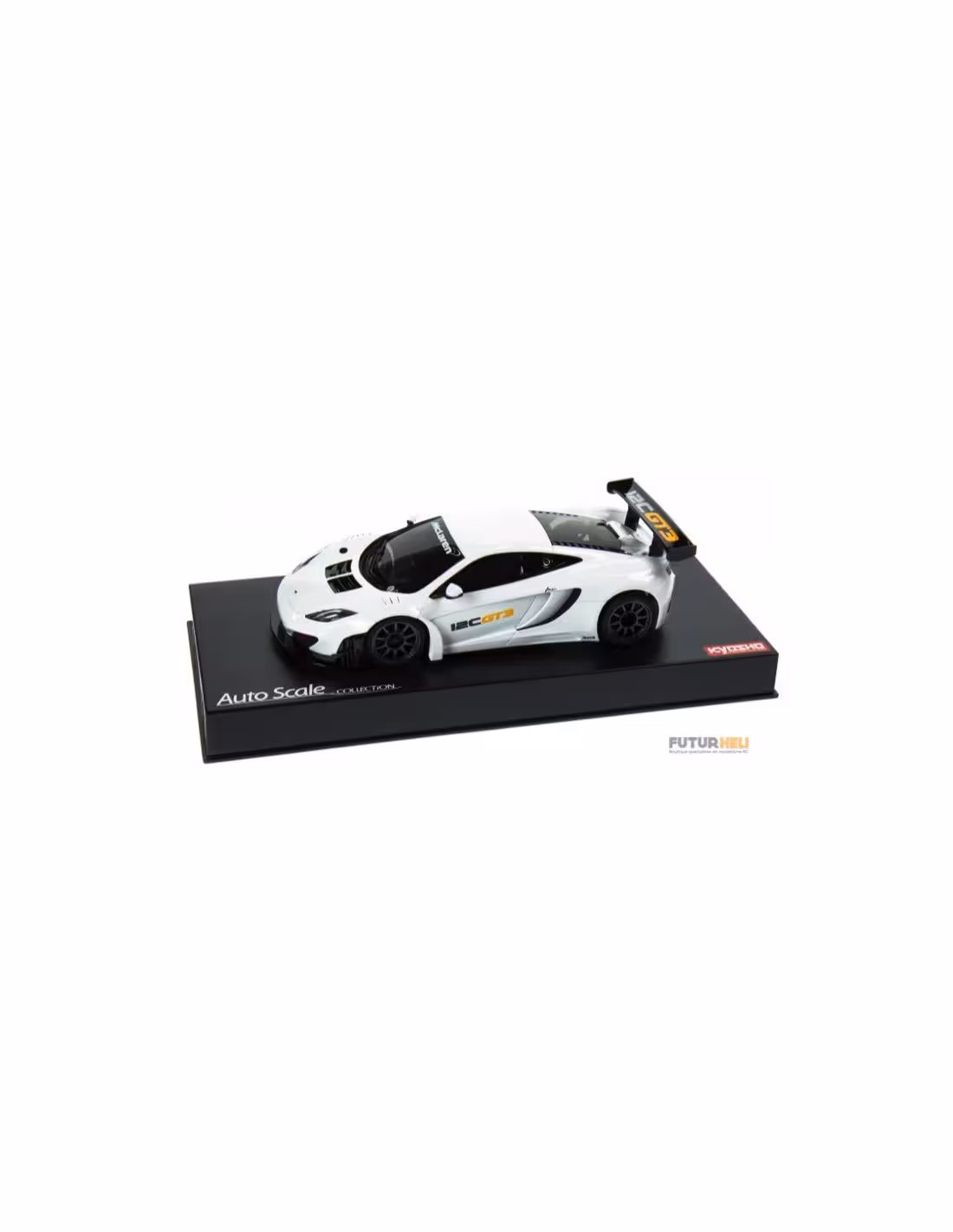 Autoscale Kyosho Mac larron 12C GT3 2013 Blanche  Kyosho est une carrosseries pour châssis Mini-Z présentées sur un support et mise en valeur dans une boîte transparent à l'image des miniatures de collection.