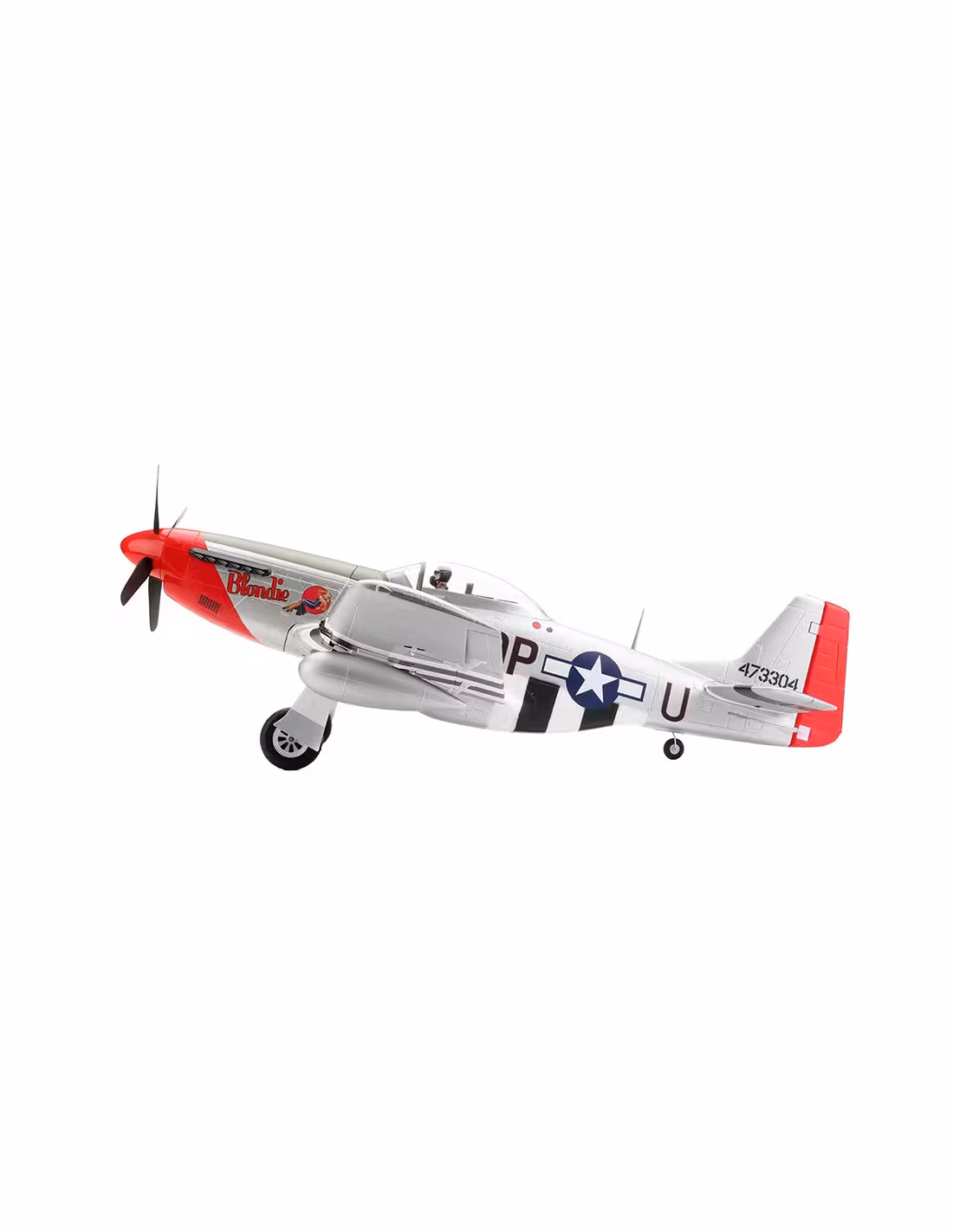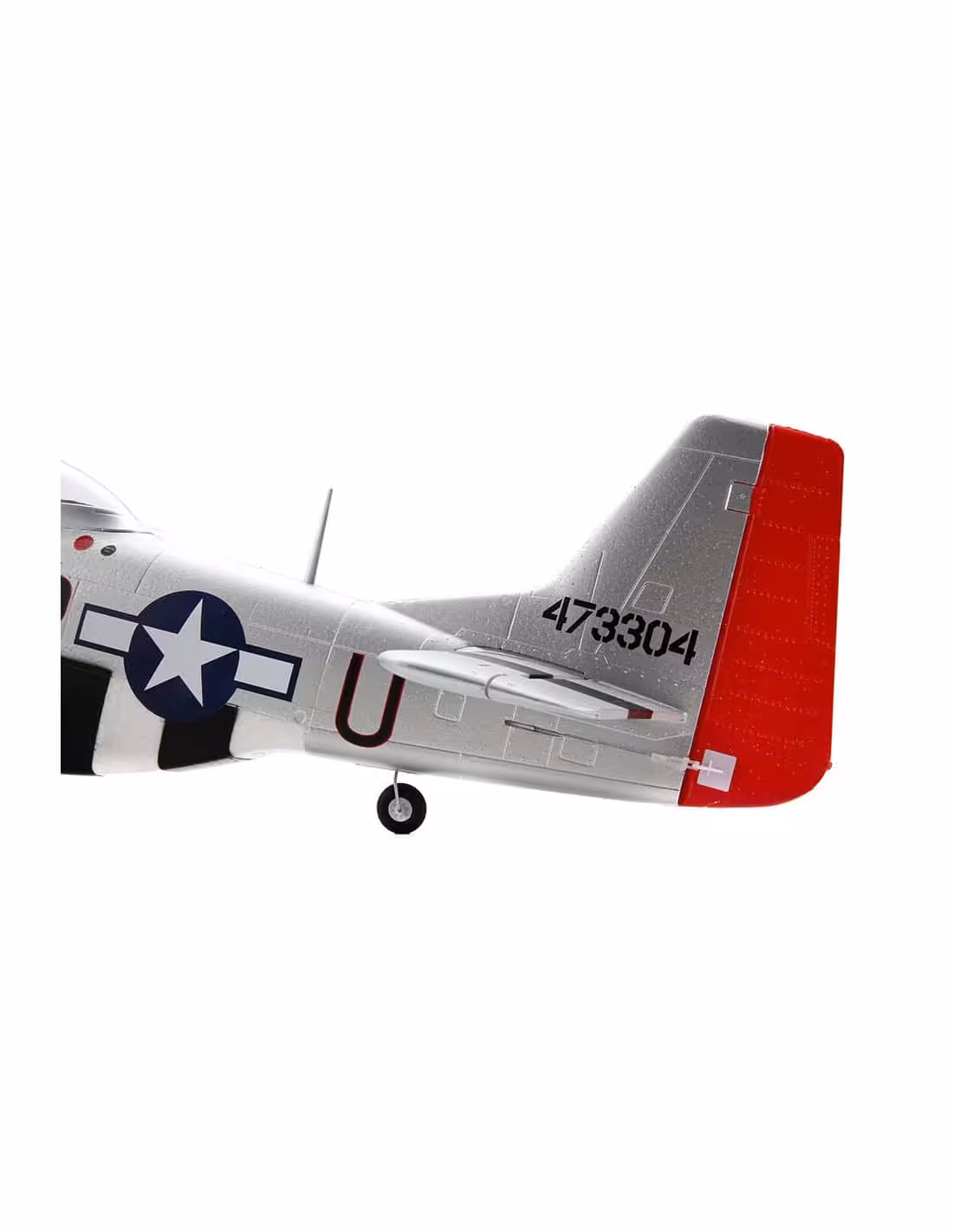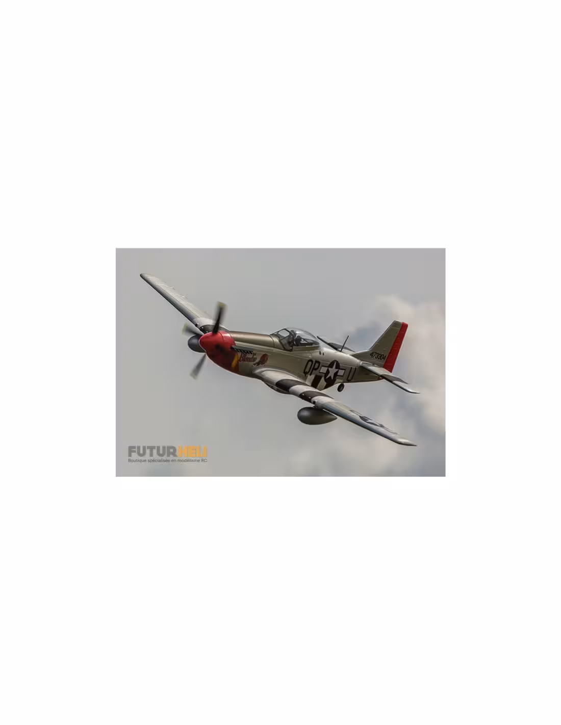 - Le E-flite® P-51D Mustang 1.2m est une park flyer qui plaira à tous. Même à l’arrêt, ses détails comme son hélice quadripale et son cockpit détaillés attirent l’attention sur ce modèle de Mustang. Chaque volet est actionné par un servo indépendant et son train d’atterrissage rentrant électrique ajoute une touche de réalisme supplémentaire. Sa structure en mousse Z-Foam lui apporte légèreté et une résistance idéale pour une utilisation quotidienne. Mais c’est la technologie AS3X® qui rend ce warbird unique. Le récepteur Spektrum AR636A DSMX® vous propose un système AS3X spécifiquement réglé pour vous assurer une qualité de vol exceptionnelle, digne d’un modèle bien plus grand et réglé par des experts. Que vous soyez un pilote intermédiaire ou expérimenté, ce P-51D vous permettra de profiter des sensations de vol dignes d’un pur-sang légendaire.