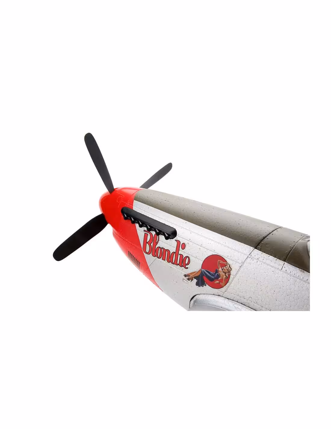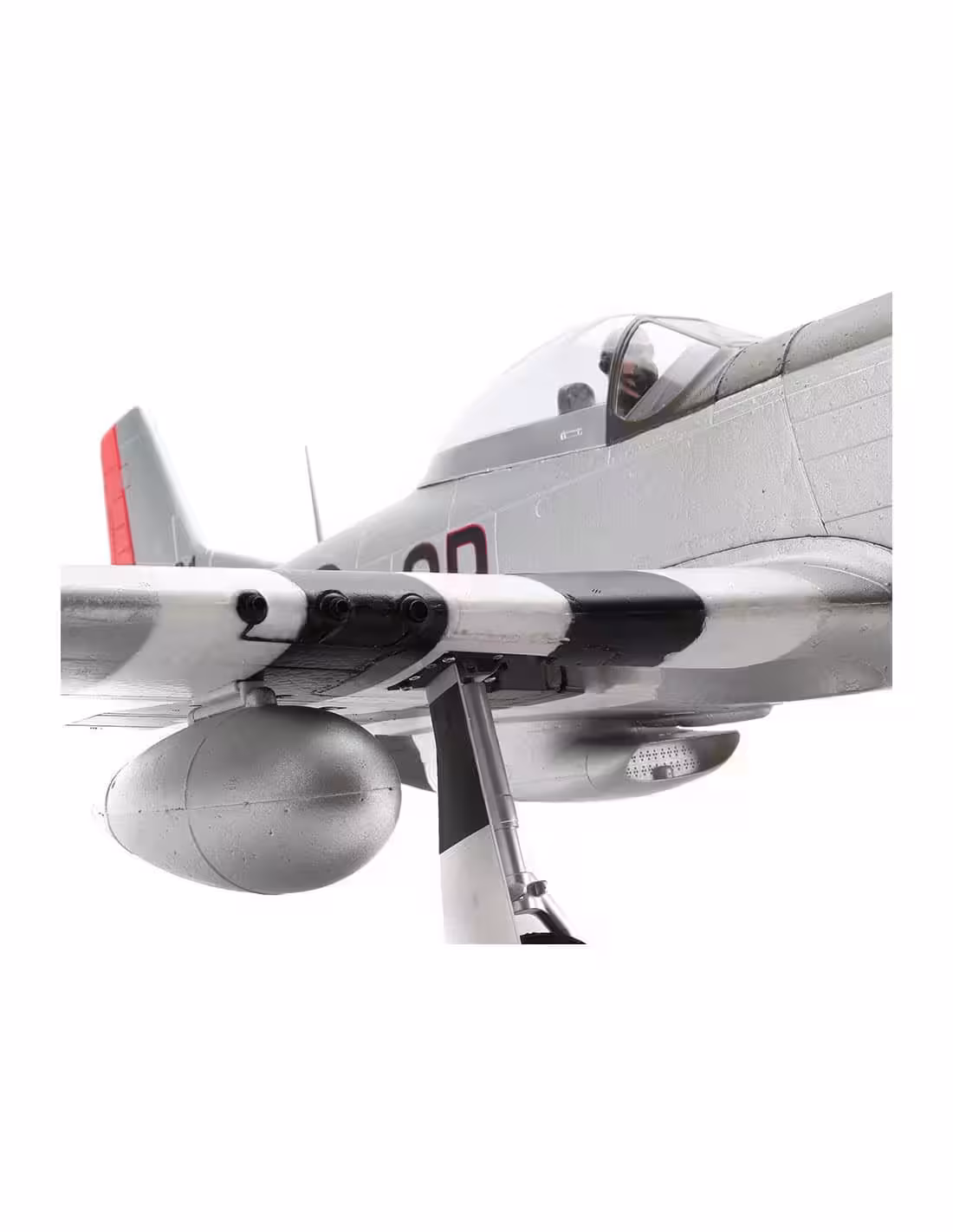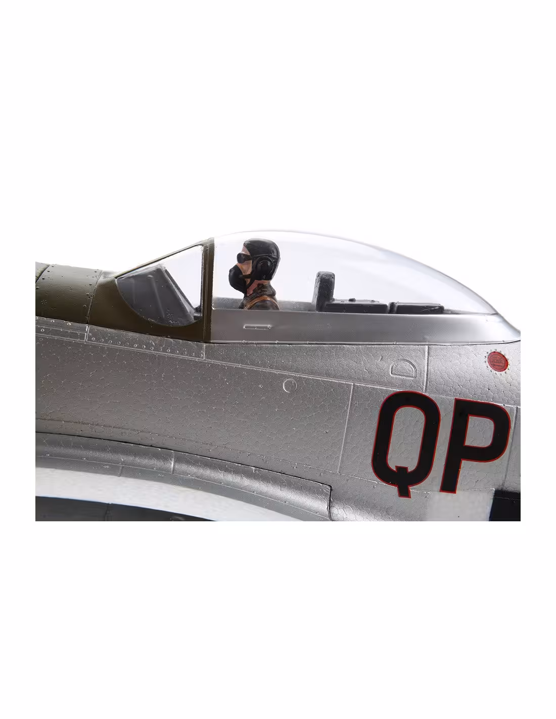 - Le E-flite® P-51D Mustang 1.2m est une park flyer qui plaira à tous. Même à l’arrêt, ses détails comme son hélice quadripale et son cockpit détaillés attirent l’attention sur ce modèle de Mustang. Chaque volet est actionné par un servo indépendant et son train d’atterrissage rentrant électrique ajoute une touche de réalisme supplémentaire. Sa structure en mousse Z-Foam lui apporte légèreté et une résistance idéale pour une utilisation quotidienne. Mais c’est la technologie AS3X® qui rend ce warbird unique. Le récepteur Spektrum AR636A DSMX® vous propose un système AS3X spécifiquement réglé pour vous assurer une qualité de vol exceptionnelle, digne d’un modèle bien plus grand et réglé par des experts. Que vous soyez un pilote intermédiaire ou expérimenté, ce P-51D vous permettra de profiter des sensations de vol dignes d’un pur-sang légendaire.