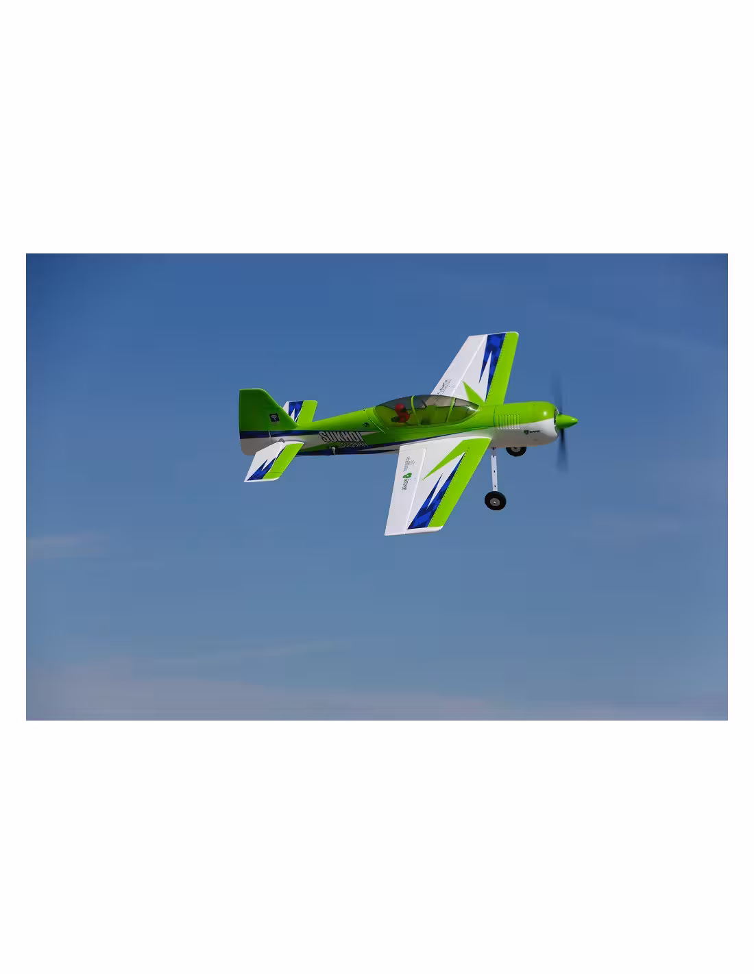 - Mode Stabilité – L’avion peut effectuer n’importe quelle figure de voltige classique ou 3D, mais se stabilise automatiquement si les 2 manches sont relâchés.