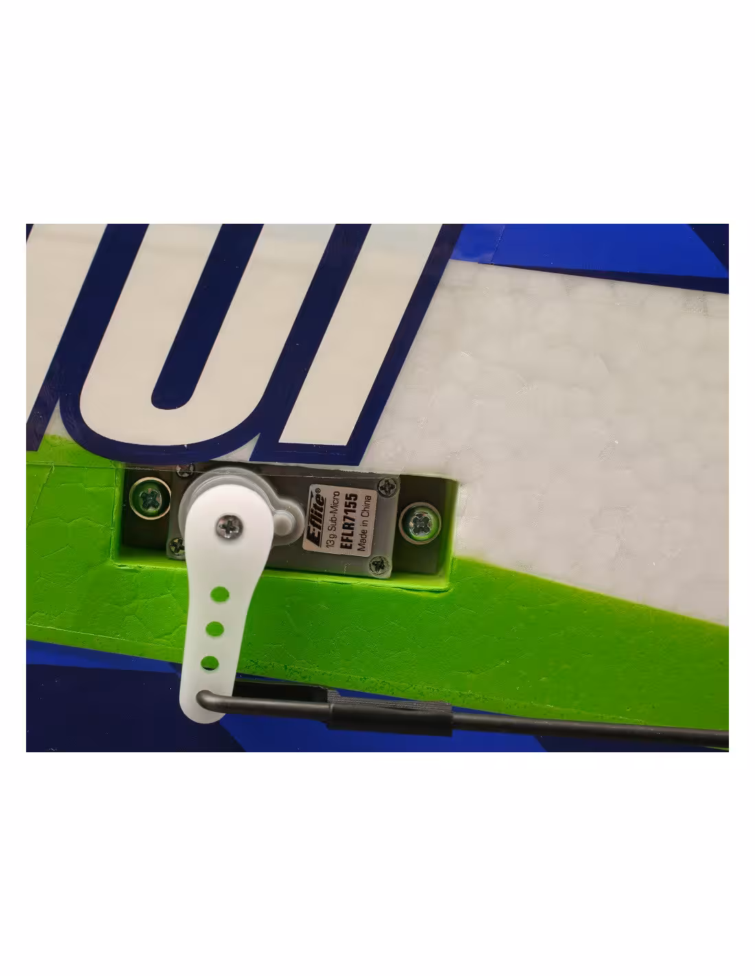 - Micros servos digitaux E-flite 13g, installés