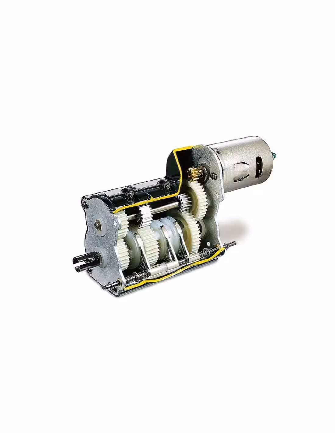 - Transmission à trois rapports contrôlée depuis l’émetteur (4 voies avec trims mécaniques).
