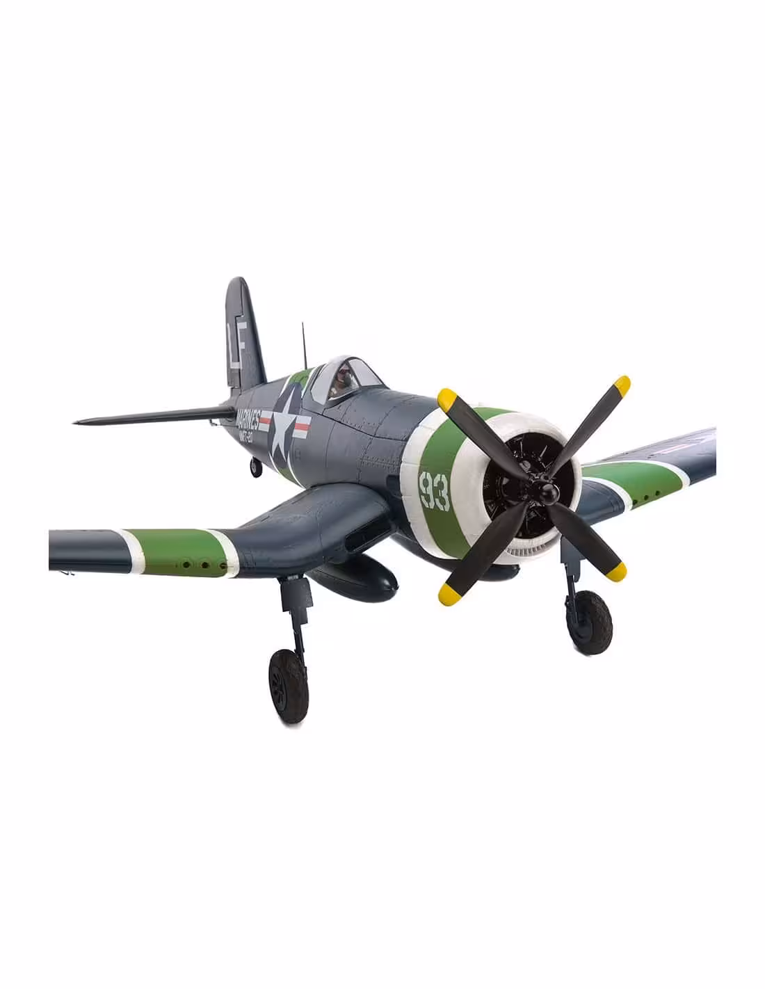 - Le E-flite F4U-4 Corsair 1,2m est un park flyer d’exception tant dans son design que ses performances. Parmi ses incroyables caractéristiques, vous trouverez une hélice quadripale, des volets fonctionnels en trois parties ou bien encore un train rentrant électrique rotatif 90°. Sa structure en Z-Foam lui apporte légèreté et résistance lors de vos vols. Le Corsair est l’avion dont vous avez besoin car il est équipé de la technologie AS3X. Le récepteur AR636A installé est équipé du système AS3X spécialement réglé pour vous offrir une stabilité et des performances en vol similaires à celles d’un avion réglé par des professionnels. Que vous ayez un niveau de pilotage intermédiaire ou avancé, ce Corsair vous aidera à apprécier le vol d’un warbird.