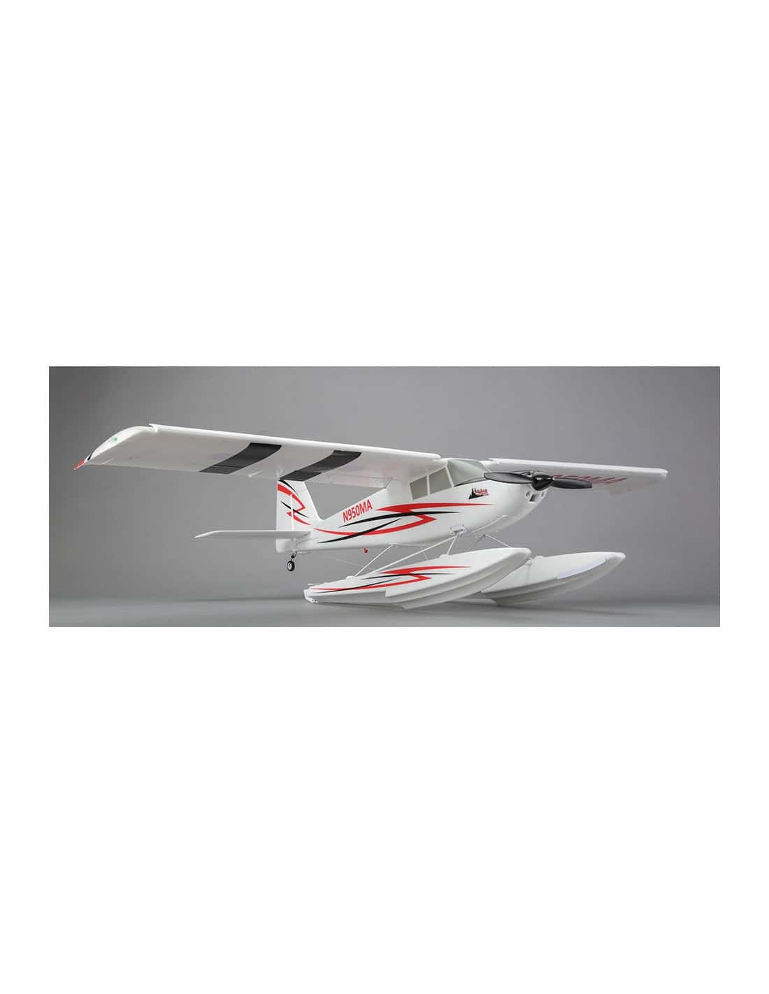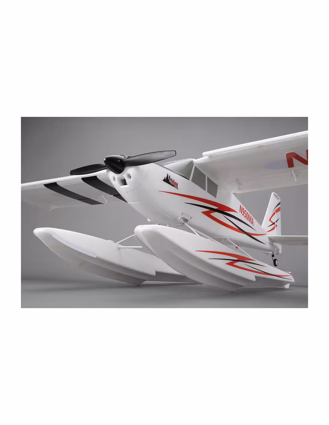 Herbe, gravier, eau ou terre, vous pourrez décoller à partir de n’importe quelle surface avec ce modèle. Le train d’atterrissage avec ses pneus Tundra est amorti pour résister aux terrains accidentés et ne pas être affecté si vous êtes sur l’herbe. Les flotteurs fournis sont assortis au modèle et sont équipés d’un double gouvernail pour un contrôle parfait de la direction.