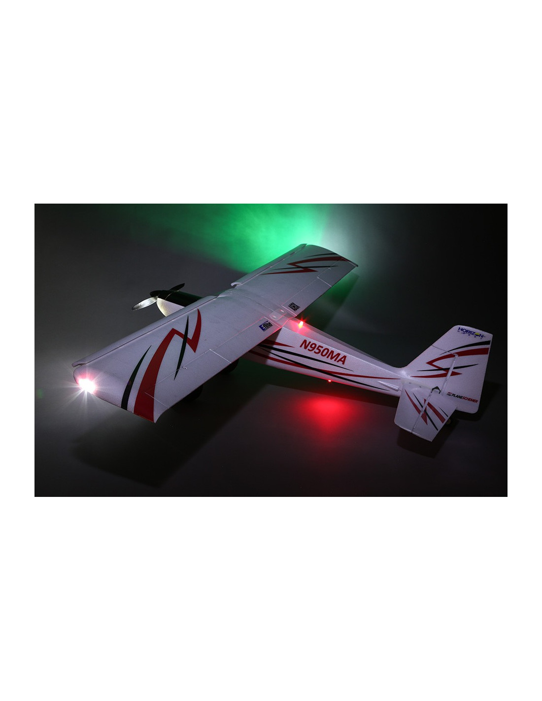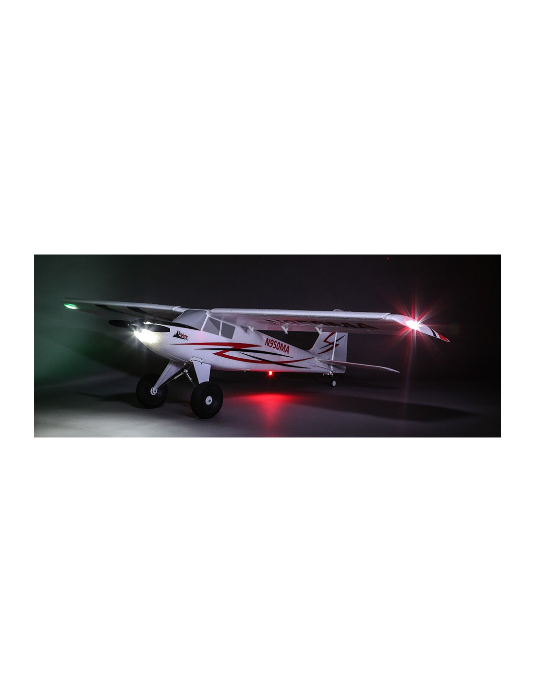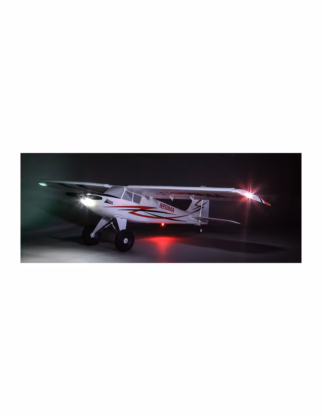 Dès sa sortie de boîte, ce modèle est équipé d’un système d’éclairage DEL réaliste avec des feux de navigation, des feux d’atterrissage, des feux stroboscopiques en bout d’ailes et des balises, tous installés et alimentés par la batterie.