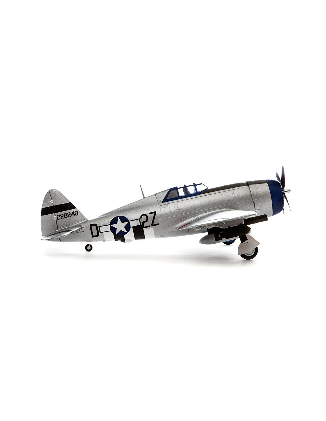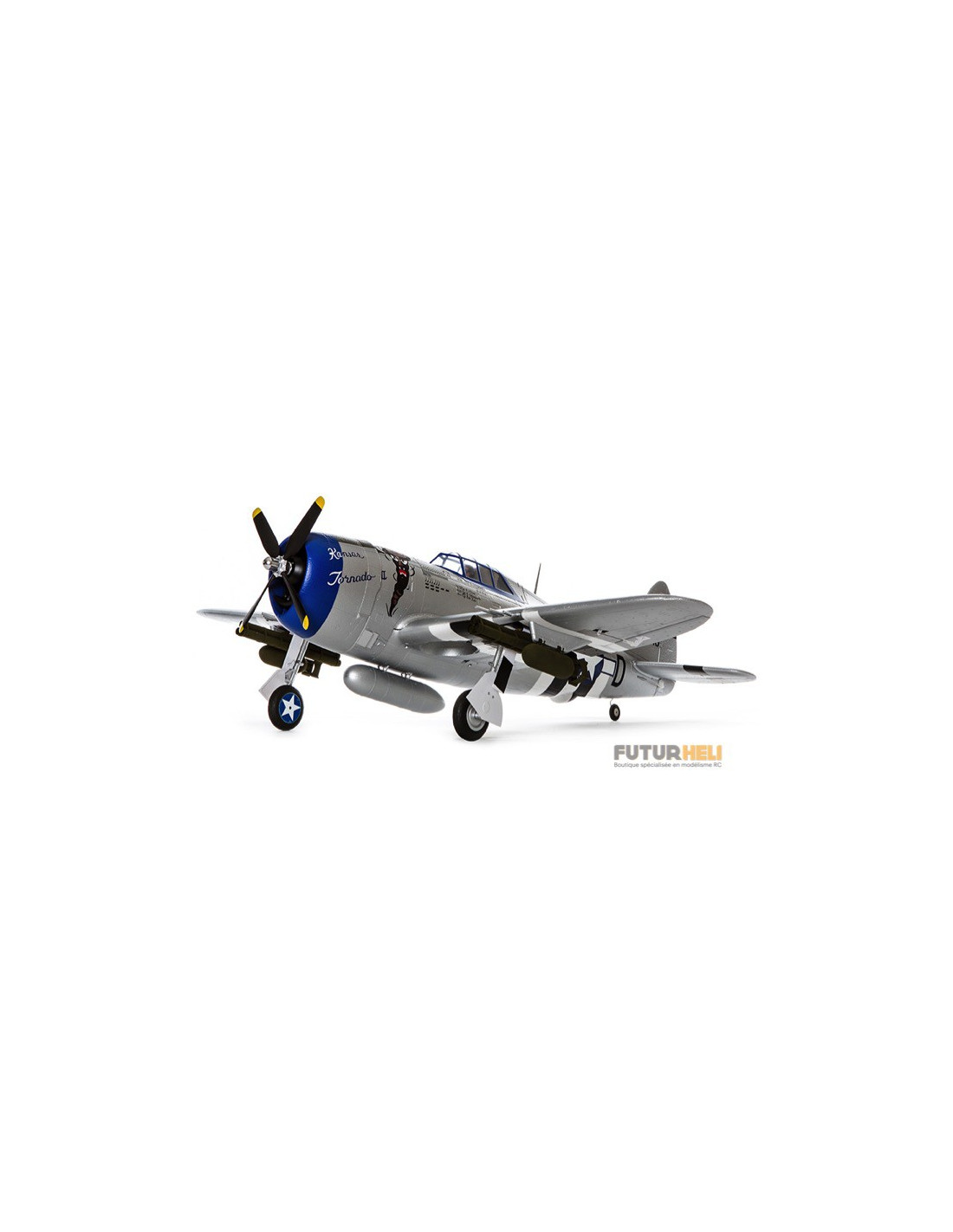 - Ces deux versions Brushless de la réplique du légendaire P-47 Razorback vous offriront d’incroyables sensations en vol. L’avion est équipé d’une hélice quadripale, de volets fonctionnels et d’un train rentrant électrique. Il présente également des supports roquettes, des bombes et un dispositif de largage central que vous pourrez installer et retirer facilement et sans outils.