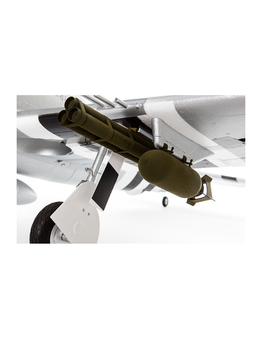 - Vous pourrez également installer des pièces sur les ailes et le fuselage. Il comprend 2 bombes, 2 supports de rocket et un dispositif de largage central. Ils s’installent et désinstallent en quelques secondes, sans outils ou colle.