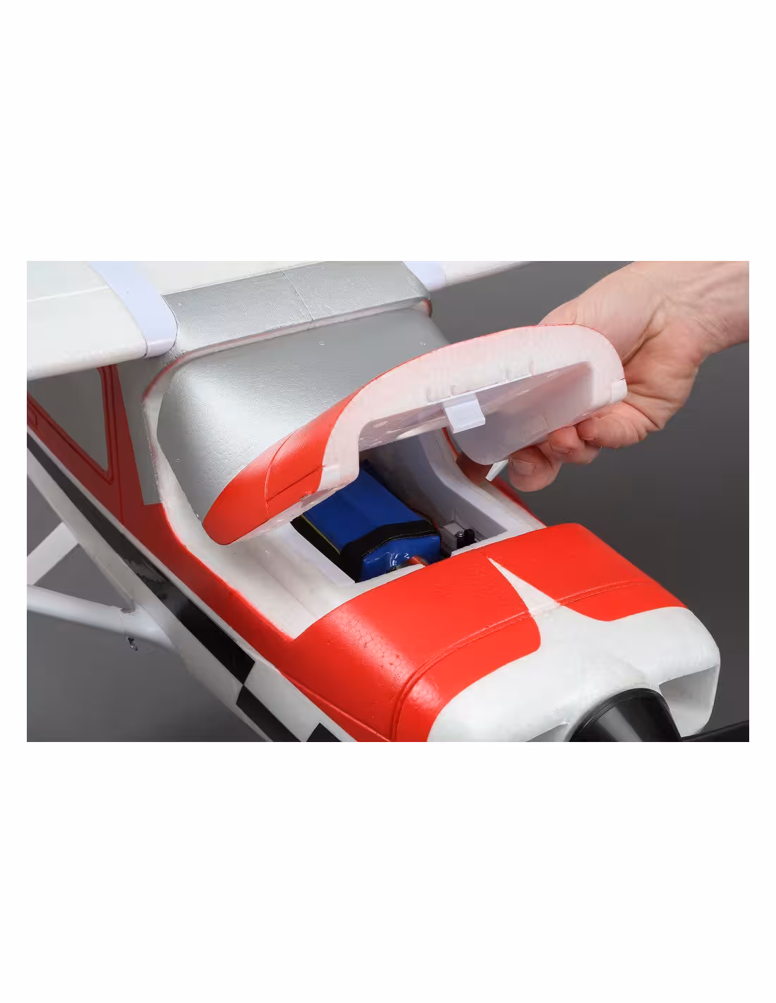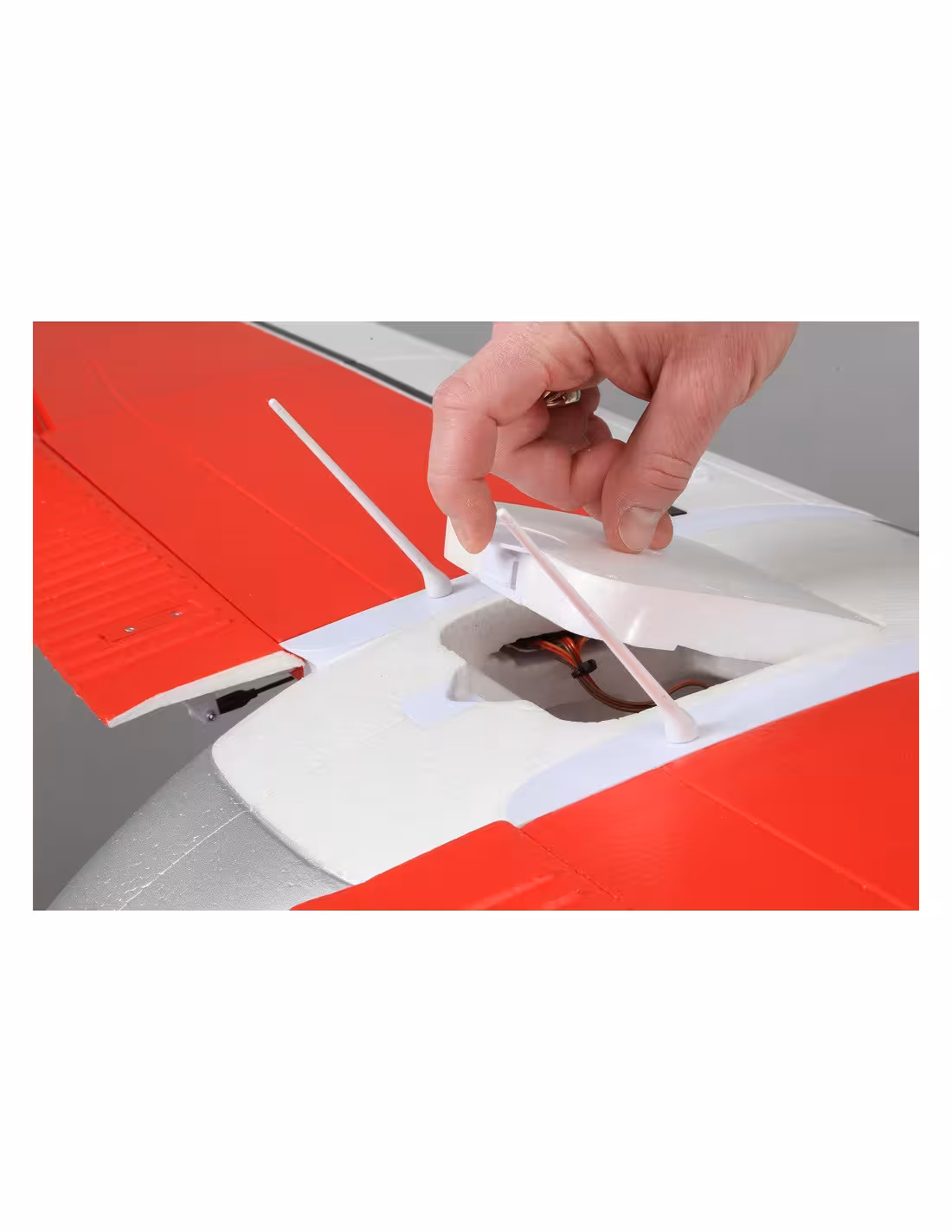 Après l’assemblage initial, vous n’aurez plus besoin d’outils pour fixer et retirer les ailes sur le terrain. Vous n’aurez même plus besoin de toucher les câbles servo. Le nouveau système de connexion servo permet un branchement automatique des servos d’aile et des prises éclairage DEL lorsque vous installez l’aile.