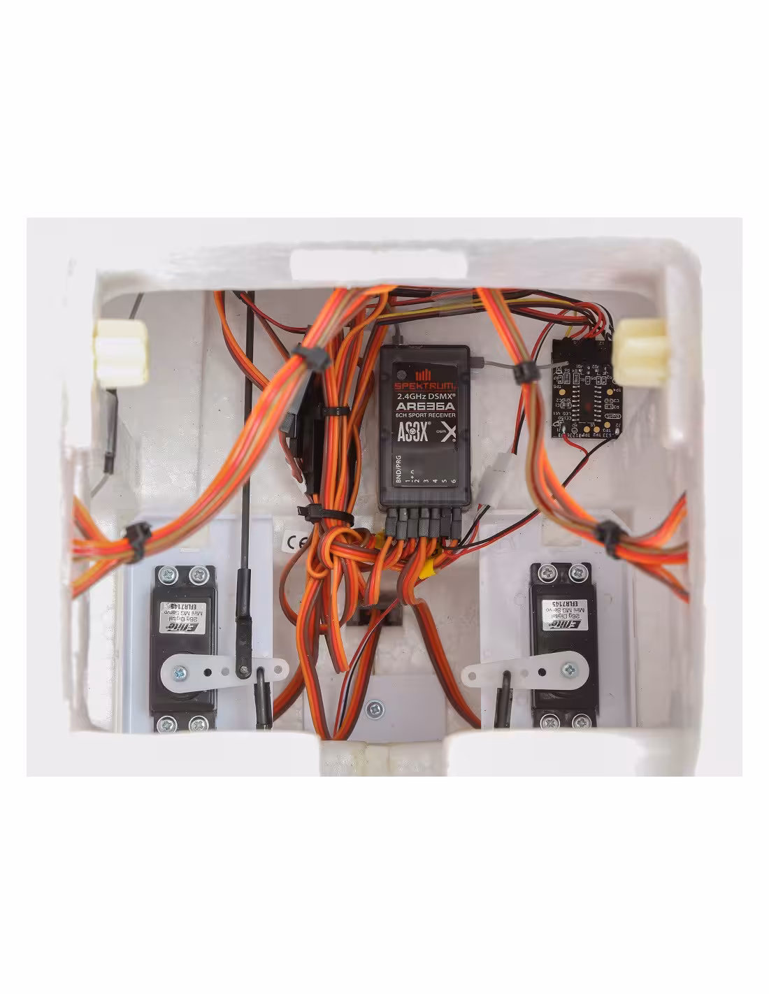 - Émetteur 6 voies minimum DSMX/DSM2
