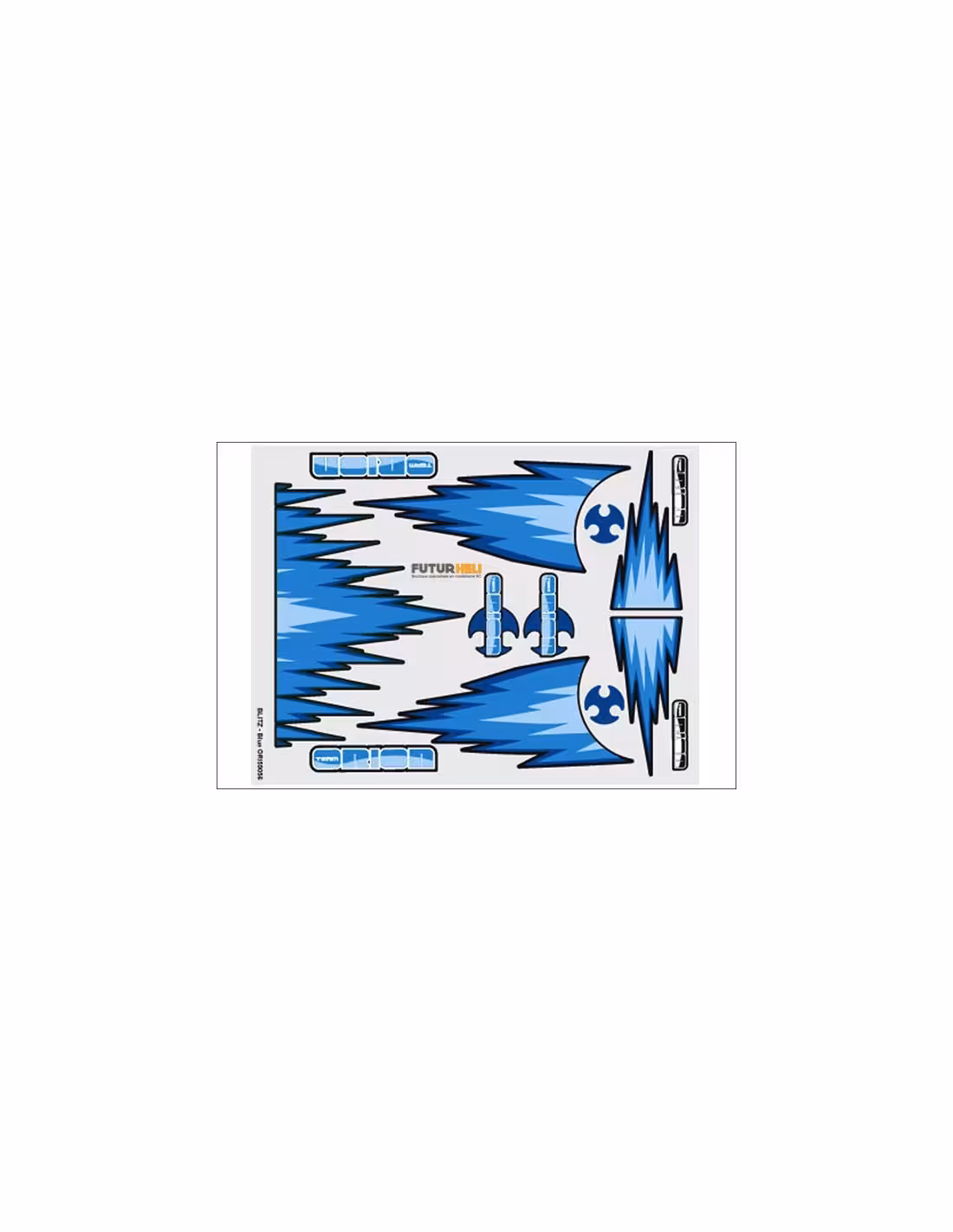Planche autocollant Blitz blue ORi59056 a placer à l'intérieur de la carrosserie lexan avant la peinture .