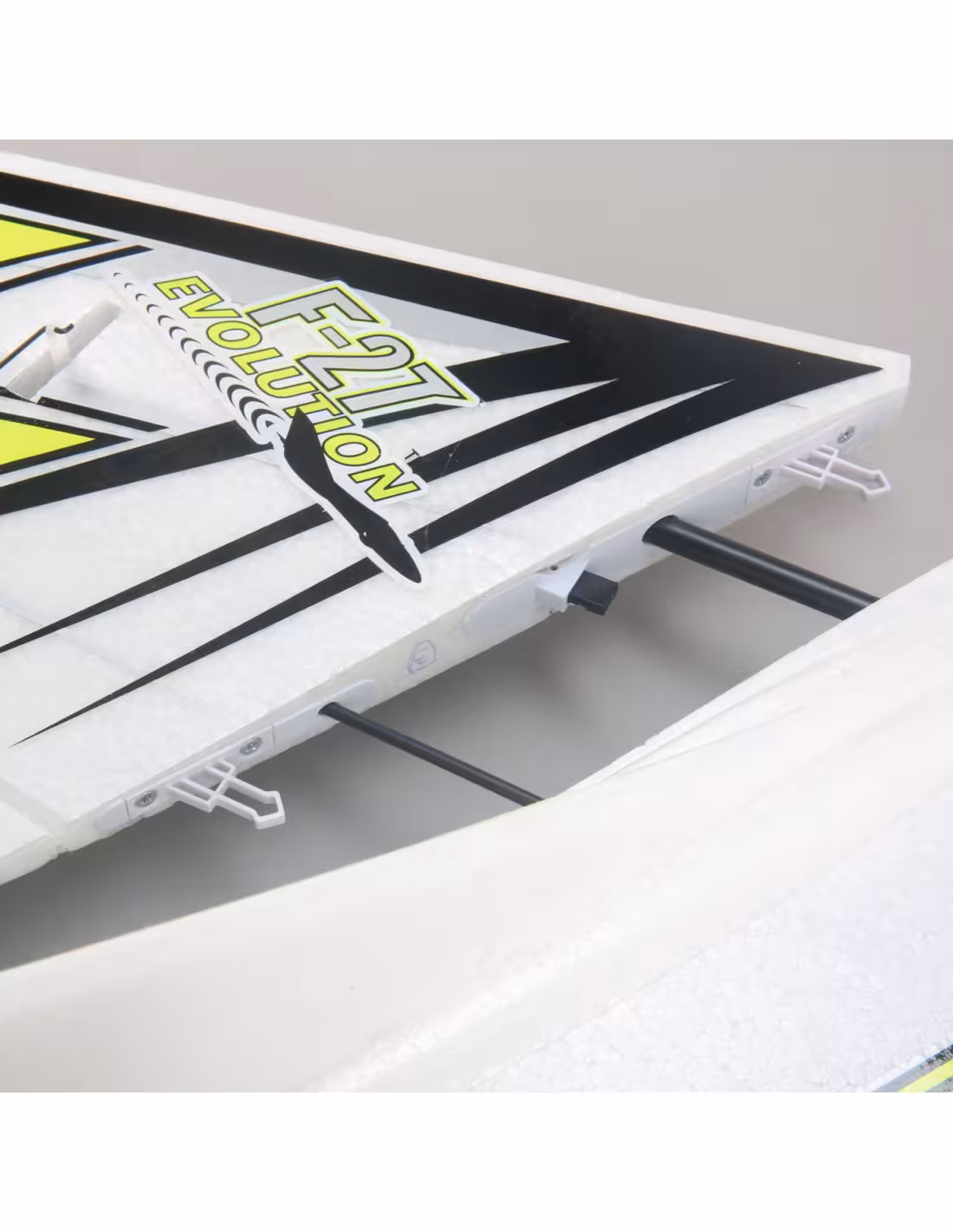 - L'E-flite F-27 Evolution 943mm se démarque en combinant un design connu et éprouvé avec des améliorations évolutives telles qu'une augmentation significative de la puissance, des ailes amovibles et une option FPV. Elle deviendra vite votre aile volante favorite.