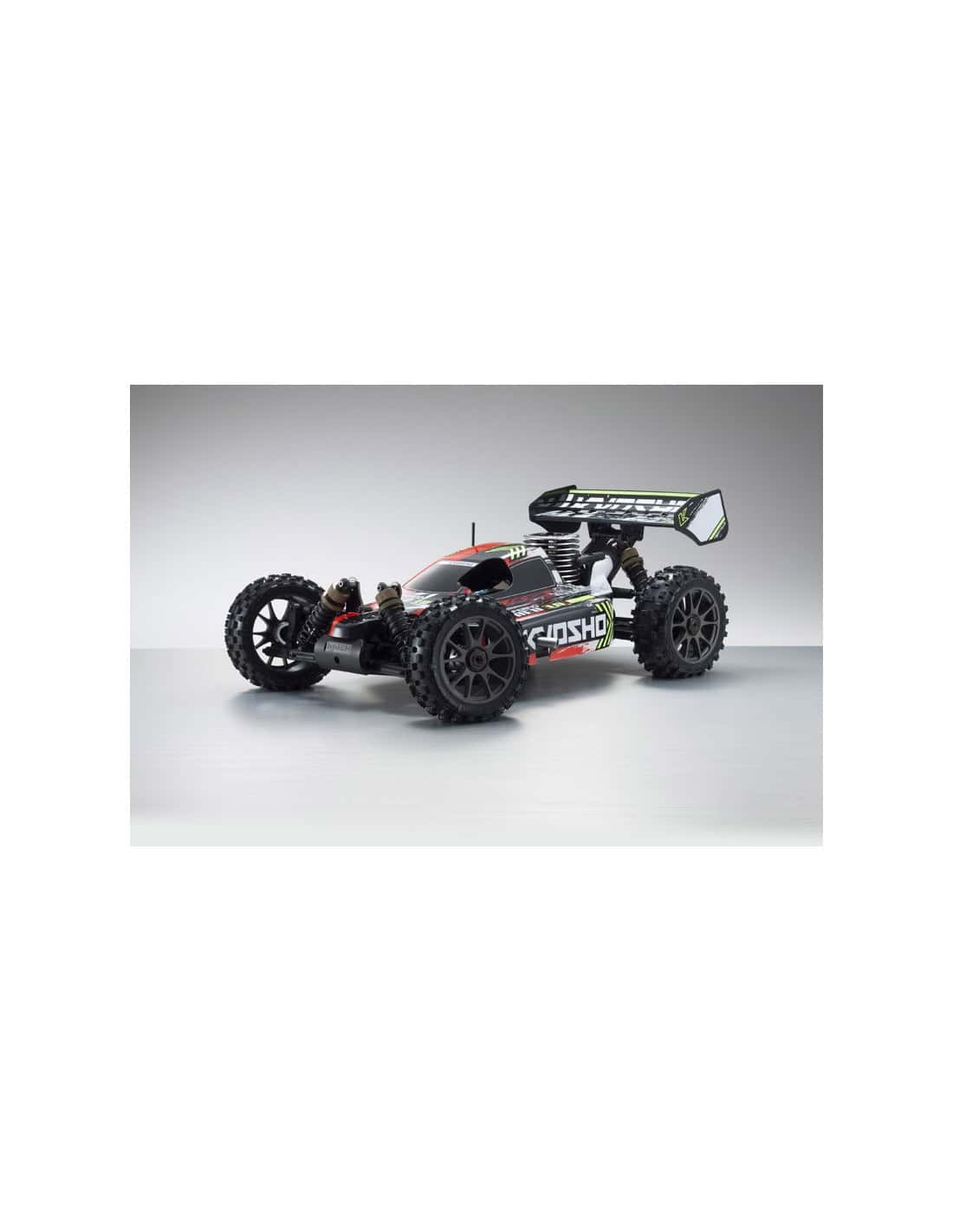 - L'inferno Neo est le digne successeur de l'Inferno, buggy 8 fois champion du Monde de TT1/8. Fort de cet ADN victorieux, l'Inferno NEO 3.0 est le porte drapeau de tout une marque, l'emblême d'une catégorie ! Comme les précédents modèles, le NEO 3.0 est un modèle readyset, vendu prêt à rouler. Il ne vous restera plus qu'à installer des batteries dans votre émetteur et dans votre récepteur et bien entendu un peu de carburant pour démarrer le tout nouveau KE21SP ! En effet, c'est un tout nouveau moteur qui équipe cette nouvelle génération d'Inferno NEO. Equipé d'un lanceur intégré, ce KE21SP offre une grande souplesse d'utilisation pour les pilotes débutants avec une grande facilité de réglages. Le NEO 3.0 est équipé d'amortisseurs Big Bore et de nouveaux pneus à crampons KC Cross en gomme ultra tendre pour des performances accrues. Comme tous les modèles Kyosho, une large gamme d'options vous permettra d'améliorer votre châssis.