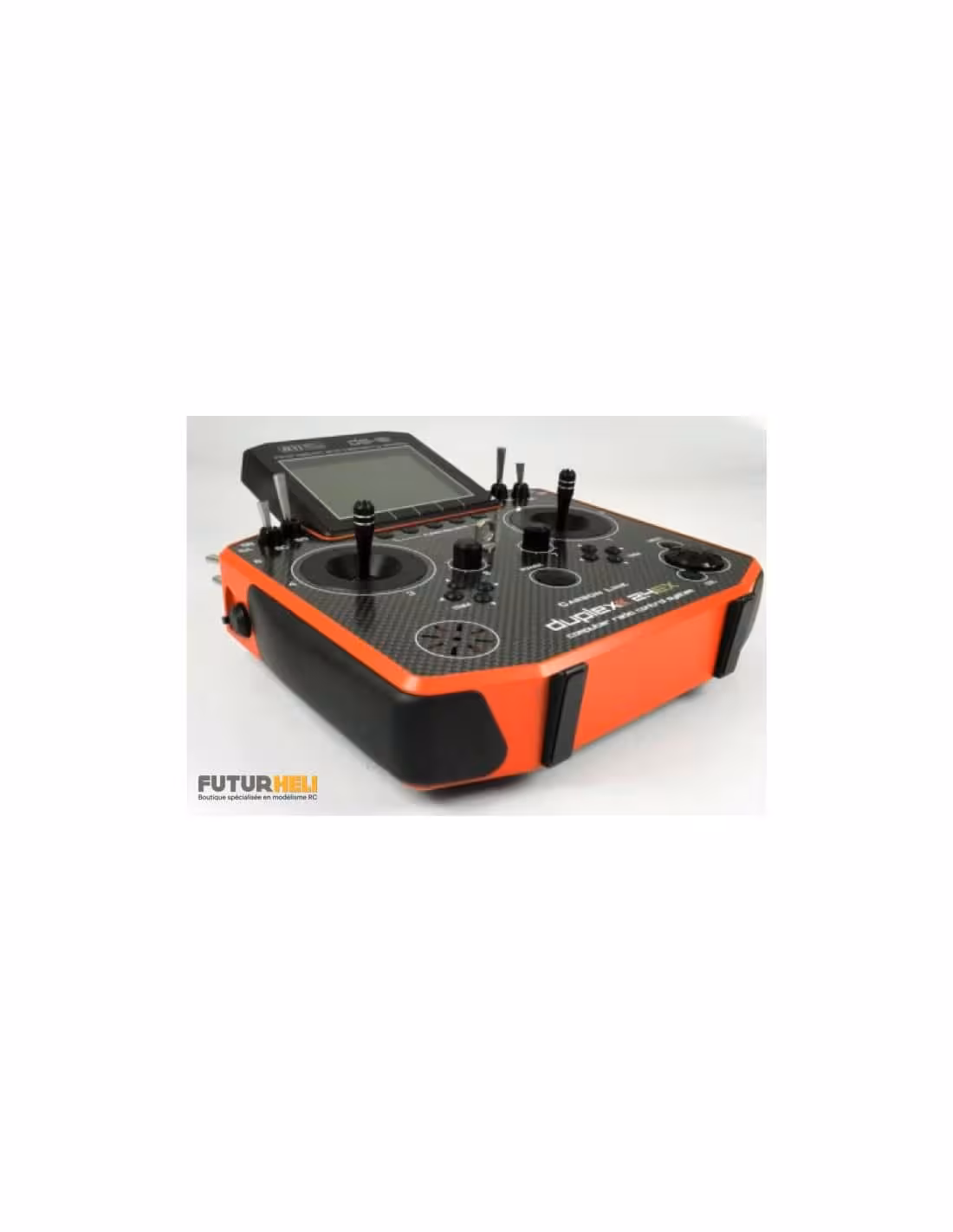 - Avec un système de transmission numérique révolutionnaire, 24 canaux, 2,4 GHz, à saut de fréquence, est entièrement conçu et fabriqué par Jeti Model en République tchèque. Le concept Duplex est l'un des systèmes de radio les plus avancés sur le marché. Avec leur solide boîtier en aluminium usiné dans la masse, l'antenne est entièrement intégrée. Elle comporte aussi un mini port USB, un haut-parleur intégré, une prise casque, des manches avec capteurs Hall (résolution de 4096 pas) et 9 roulements à billes pour un mouvement précis. Un grand écran rétroéclairé 320x240 et de nombreuses autres caractéristiques innovantes.