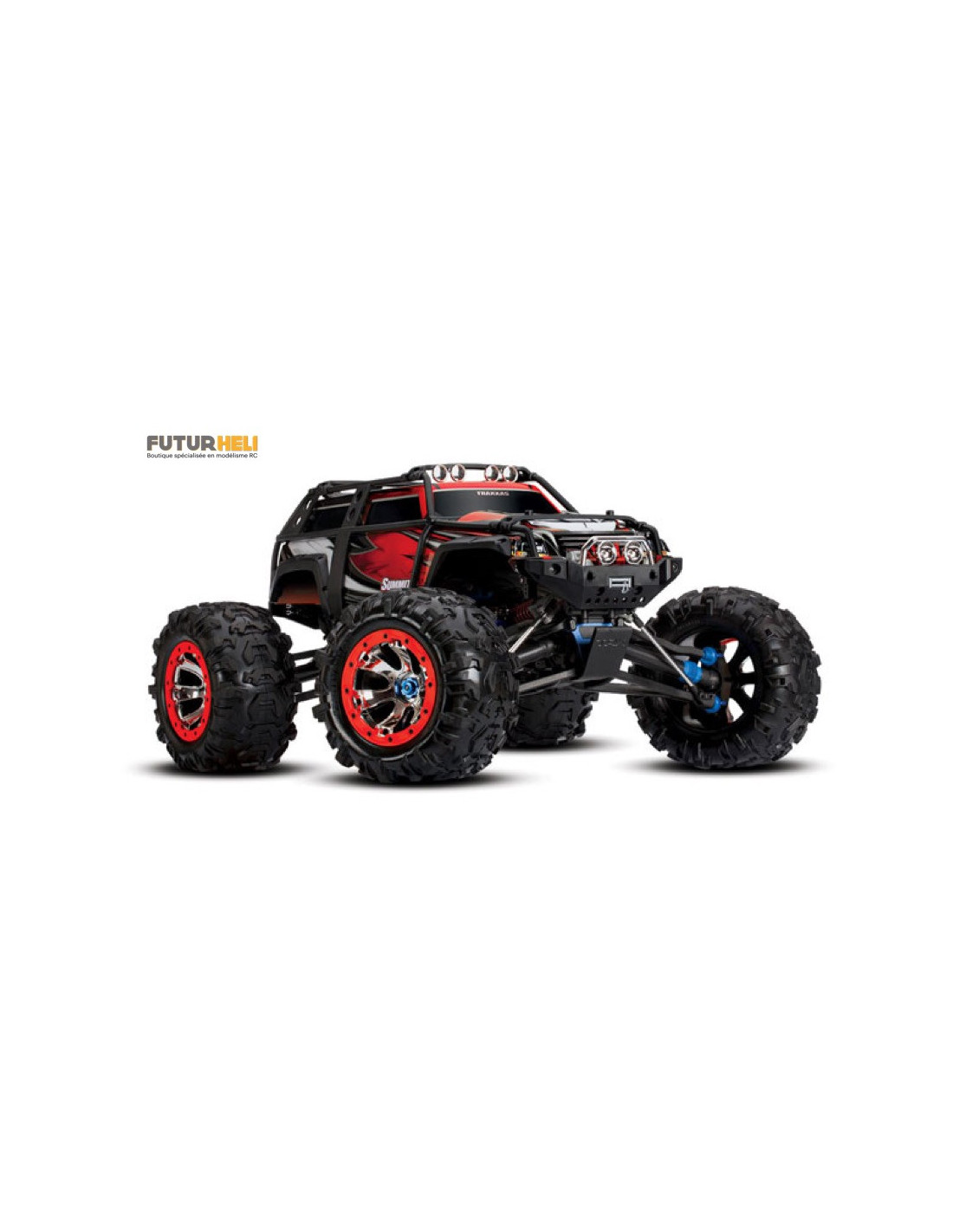 - Nécessite accus Traxxas 8,4V(x2) et chargeur 12V et 4 piles alcalines AA pour l'émetteur.