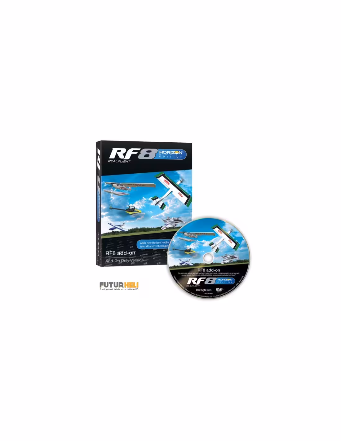 - Avec l'add-on Realflight 8 vous ajoutez a votre simulateur plus de modèles comme le sport cub, le mini convergence,le timbre avec des flotteurs etc ....
