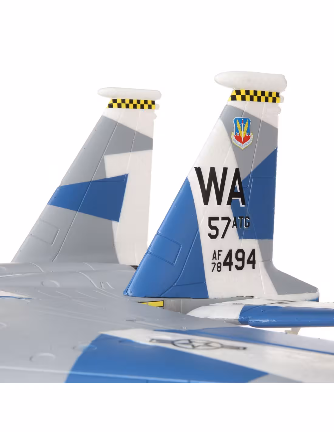 Le E-flite® F-15 Eagle jet 64mm EDF est une réplique du chasseur de supériorité aérienne de renommée mondiale piloté par l'US Air Force. Il est équipé d'un moteur brushless compatible 4S et un ESC de 40 ampères qui sont adaptés à une turbine 11 à lame pour fournir une vitesse fantastique, la poussée et un bruit sont semblable à une turbine. Tout est installé en usine afin que le montage soit précis et que pour vous puissiez voler rapidement .cellule EPO léger mais solide . Batterie facilement démontable pour un changement rapide