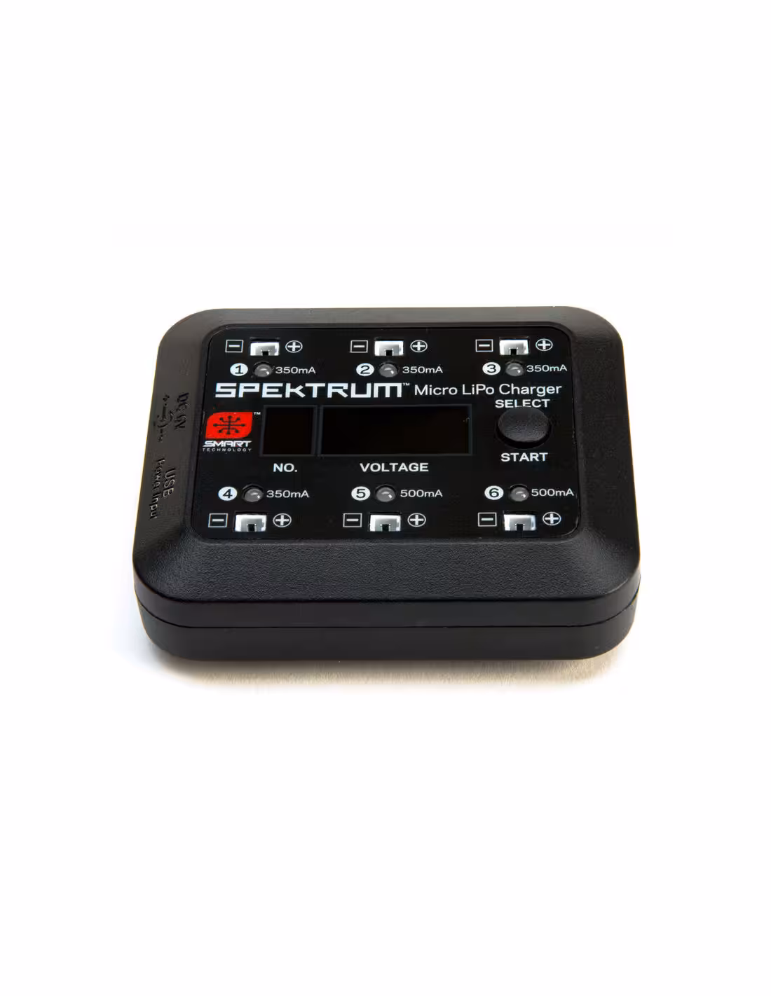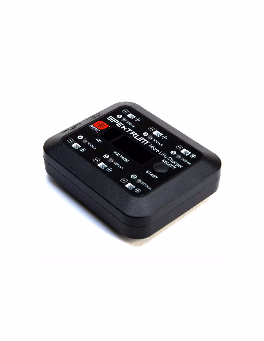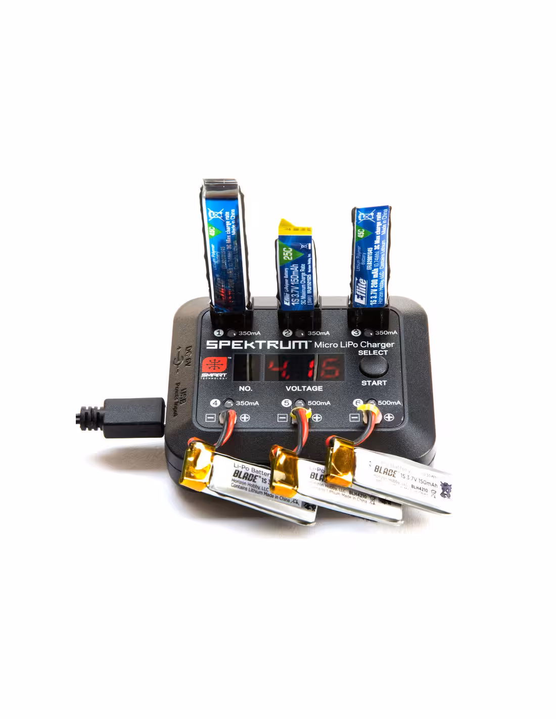 - Petit chargeur lipo Spektrum SPMXC1060 pour batterie 1S,facile à transporter et utilisable partout il vous permettra de charger 6 batteries en même temps.