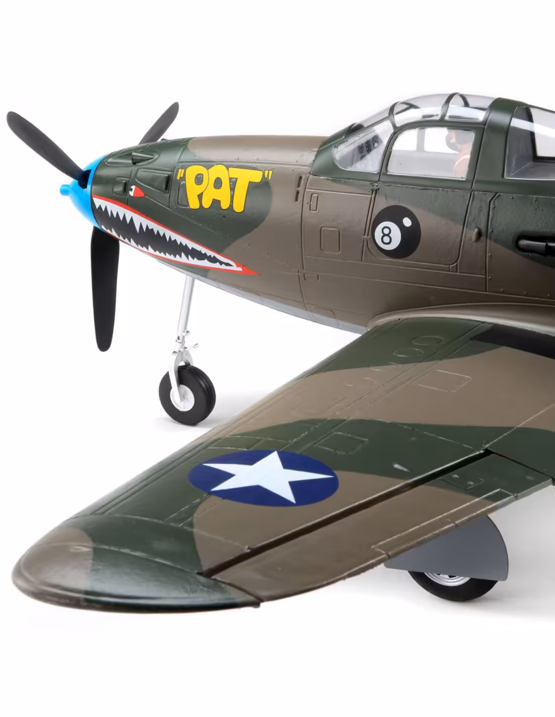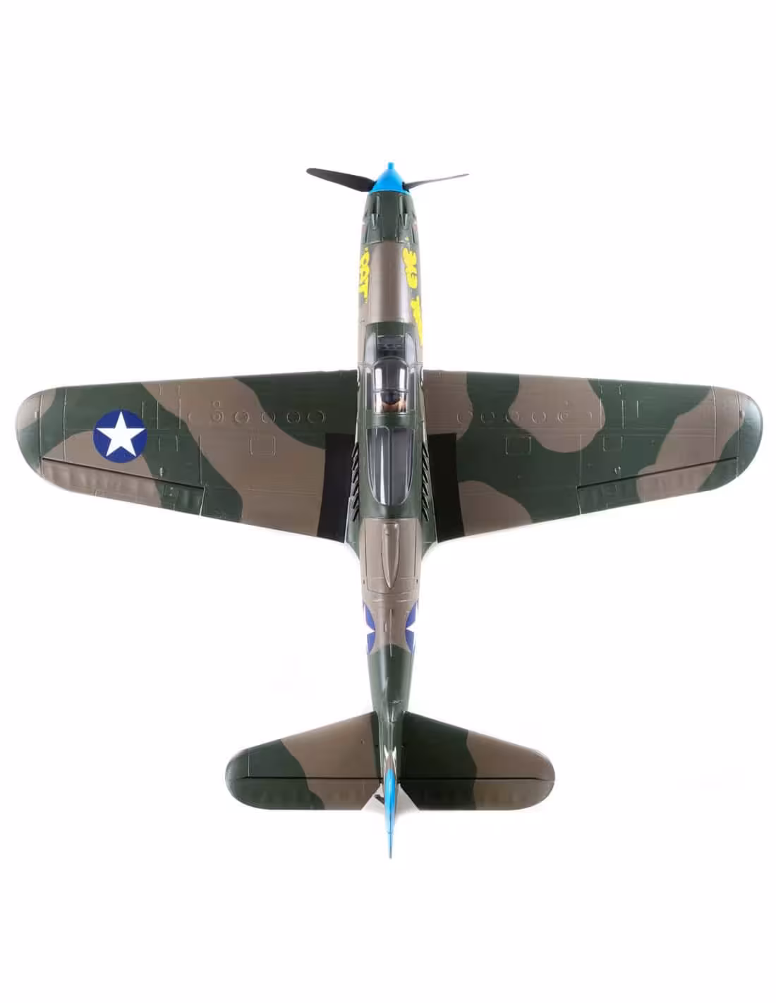 - Le modèle E-flite® P-39 Airacobra 1.2m est une réplique de l'un des avions de combat les plus novateurs et les moins conventionnels de la Seconde Guerre mondiale. Il comporte un niveau de détail important, y compris les lignes de panneaux, les pipes d'échappement, un réservoir amovible, une hélice tripale et plus encore. Il est également équipé d'un train d'atterrissage tricycle rétractable installé en usine et de volets divisés opérationnels pour améliorer le réalisme de l'échelle et l'expérience de vol unique qu'il offre parmi les warbirds. Le système d'alimentation brushless haute puissance offre des performances exceptionnelles lors de l'utilisation d'une batterie LiPo 3S, mais vous pouvez aussi installer une batterie 4S pour une vitesse et des capacités verticales bien au-delà du vol maquette , ceci sans avoir besoin de procéder à des modifications ou améliorations. La construction légère et durable en EPO, ainsi que l'assemblage vissé d'une aile monobloc avec un système de connexion mains libres innovant, vous permettent d'être prêt à voler en moins de temps qu'il n'en faut pour charger une batterie. Que vous soyez un pilote intermédiaire ou avancé, le P-39 Airacobra 1.2m offre les détails maquette, les fonctions et les performances incroyables dont vous avez besoin pour profiter de l’expérience d’un warbird pas comme les autres.