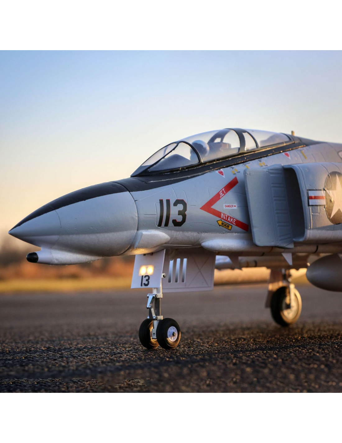 - Le E-flite® F-4 Phantom II 80mm EDF est une réplique de l'intercepteur supersonique chasseur-bombardier.Il vous surprendra par les détails de sa finition, train rentrant,éclairage,armement,etc