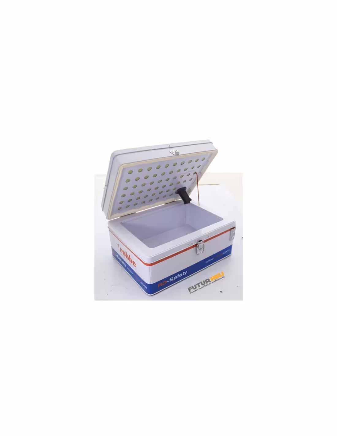 Chargez stockez et transportez vos lipos en toute sécurité. La valise metal avec système d'évacuation des gazes permettant de relâcher la pression et éviter l'explosion.Un passage de cable est prévu pour pouvoir charger directement les accus dans la valise, en toute sécurité.