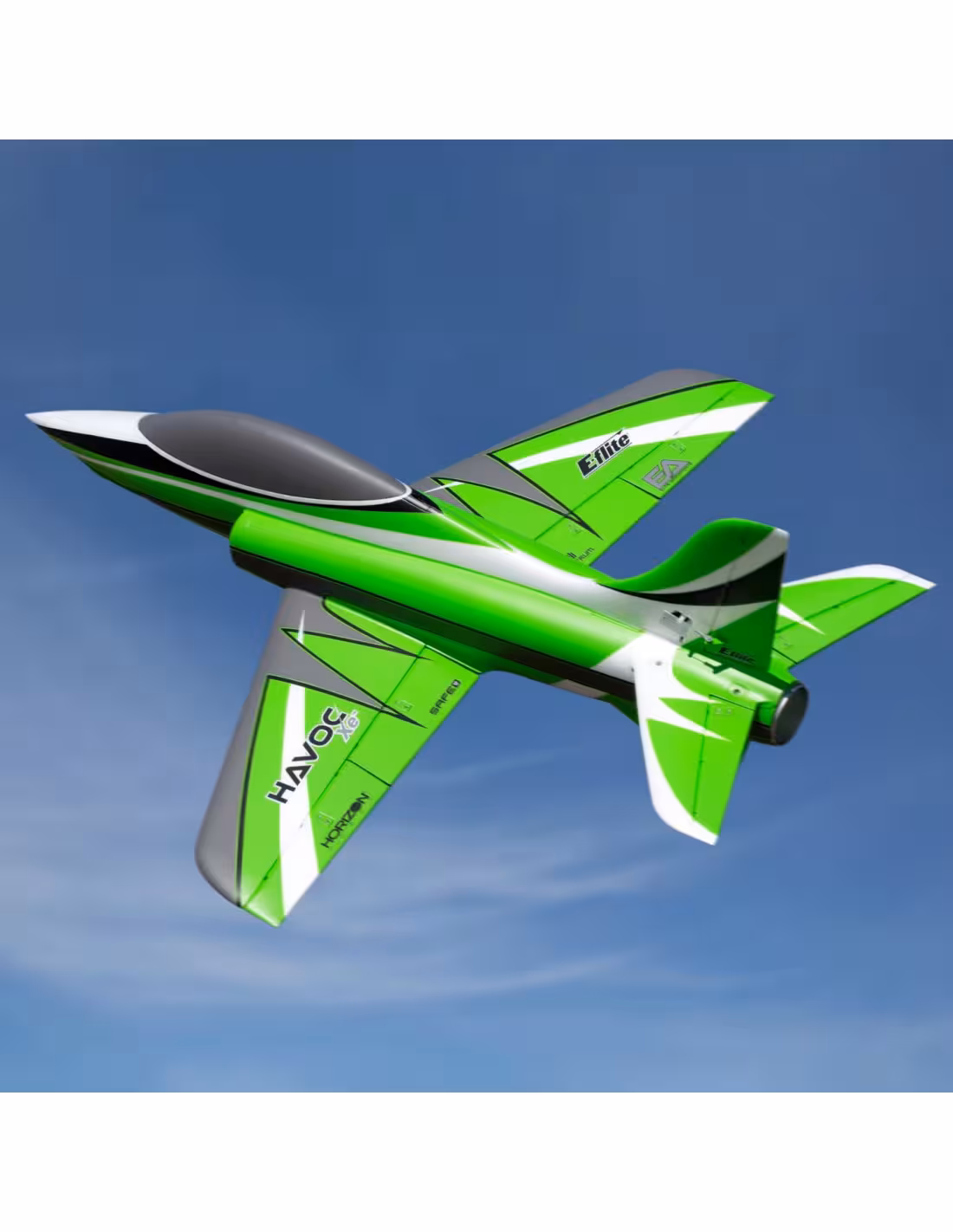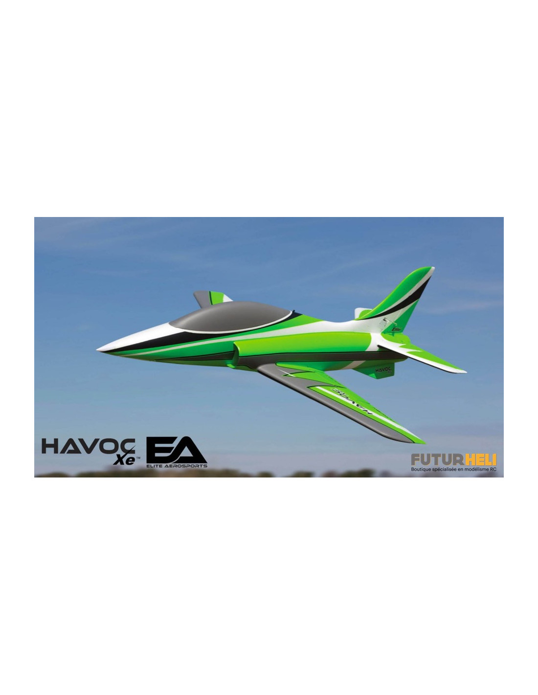 - Le Havoc de e-flite est un jet "sportif" pouvant atteindre une vitesse de 225 km/H il possède une plage de vitesse énorme et vous permettra des passage lent sans aucun problème avec sa turbine à 12 pales le rendement est parfait et peut atteindre une durée de 12mn ce qui est énorme en vol électrique.