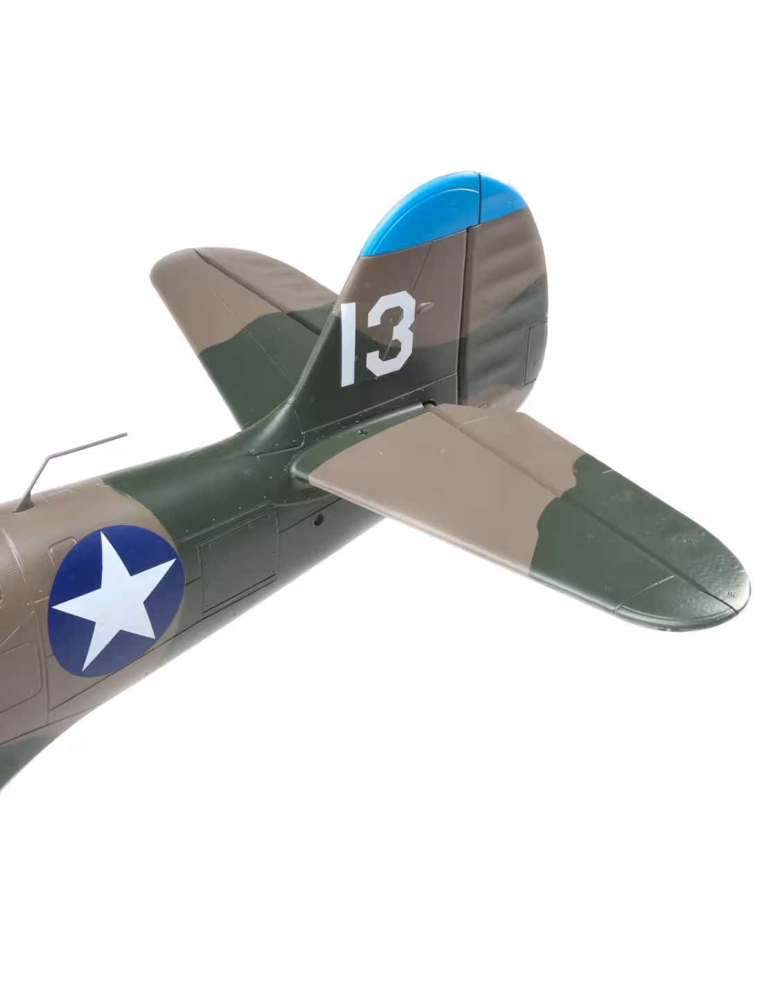 - Le modèle E-flite® P-39 Airacobra 1.2m est une réplique de l'un des avions de combat les plus novateurs et les moins conventionnels de la Seconde Guerre mondiale. Il comporte un niveau de détail important, y compris les lignes de panneaux, les pipes d'échappement, un réservoir amovible, une hélice tripale et plus encore. Il est également équipé d'un train d'atterrissage tricycle rétractable installé en usine et de volets divisés opérationnels pour améliorer le réalisme de l'échelle et l'expérience de vol unique qu'il offre parmi les warbirds. Le système d'alimentation brushless haute puissance offre des performances exceptionnelles lors de l'utilisation d'une batterie LiPo 3S, mais vous pouvez aussi installer une batterie 4S pour une vitesse et des capacités verticales bien au-delà du vol maquette , ceci sans avoir besoin de procéder à des modifications ou améliorations. La construction légère et durable en EPO, ainsi que l'assemblage vissé d'une aile monobloc avec un système de connexion mains libres innovant, vous permettent d'être prêt à voler en moins de temps qu'il n'en faut pour charger une batterie. Que vous soyez un pilote intermédiaire ou avancé, le P-39 Airacobra 1.2m offre les détails maquette, les fonctions et les performances incroyables dont vous avez besoin pour profiter de l’expérience d’un warbird pas comme les autres.