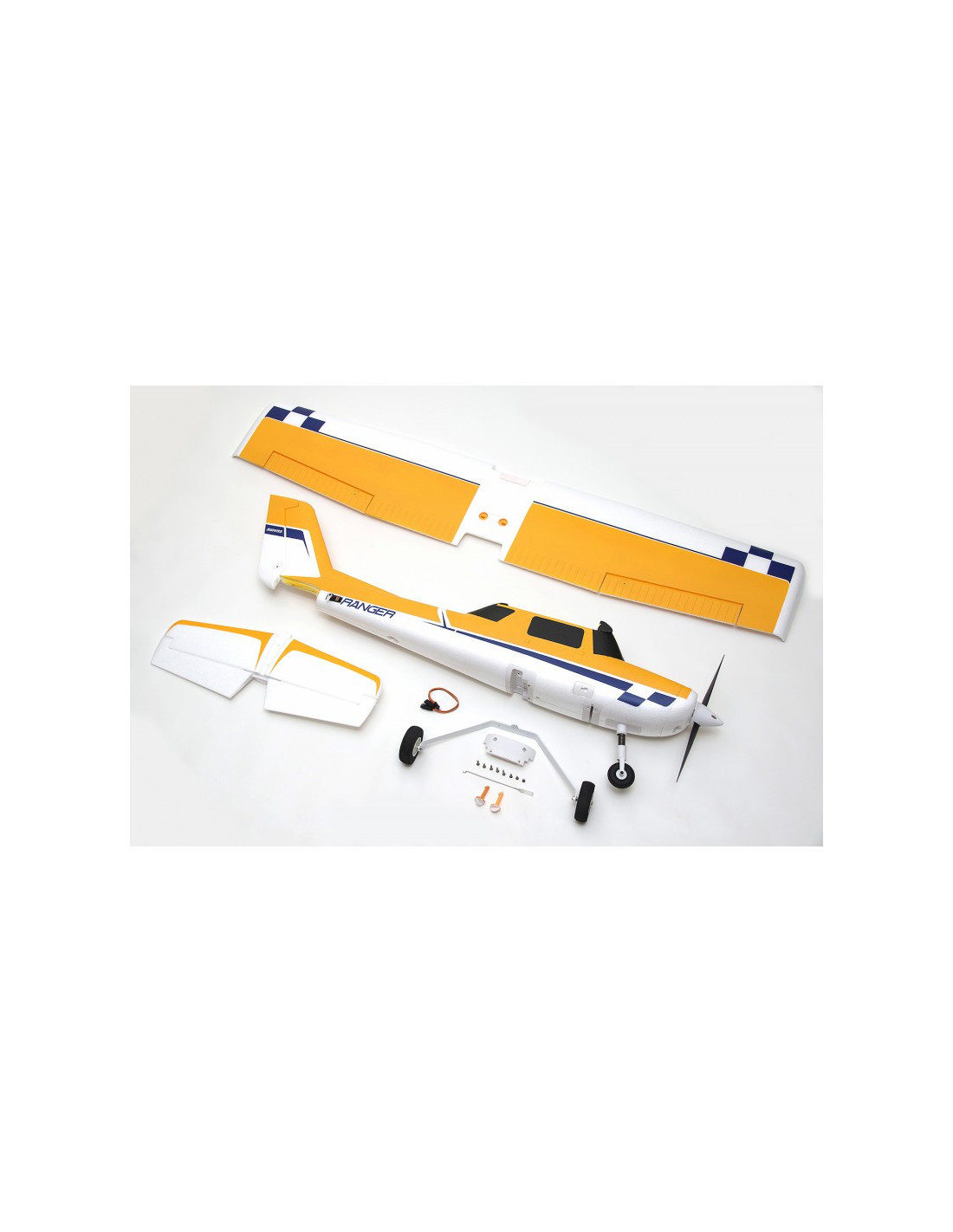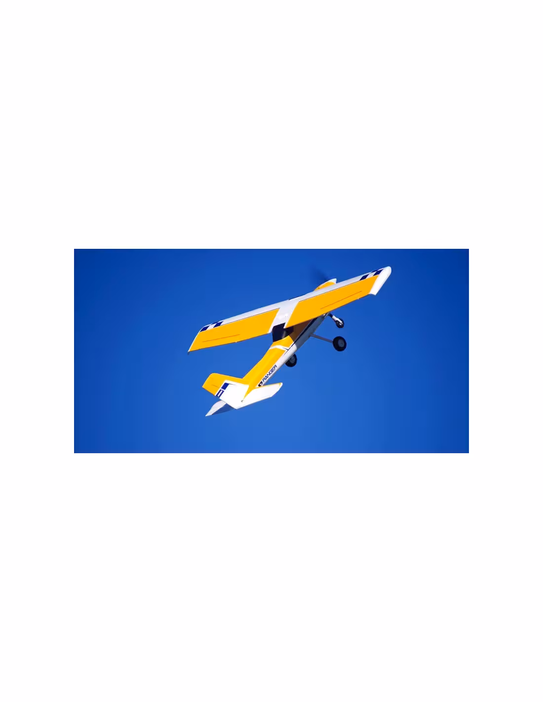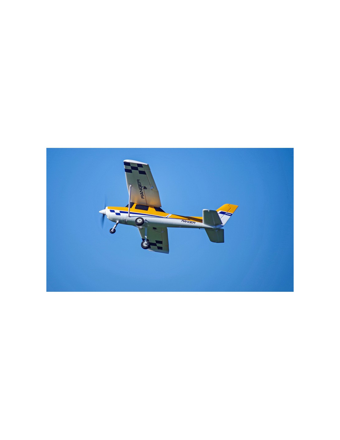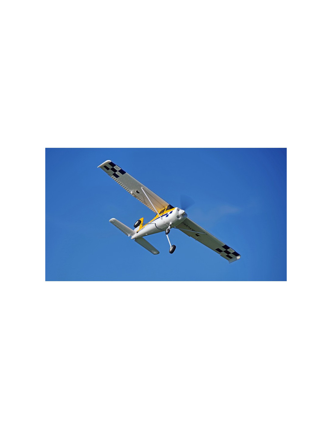 - Fabriquée dans une mousse EPO ultra légère, la configuration à aile haute de la volumineuse cellule assure au Ranger une faible charge alaire et une formidable portance, même à faible vitesse. Les mâts d’aile en plastique robuste ajoutent à la rigidité de la voilure en voltige et le train tricycle à haute résistance fait du taxiage un vrai régal.