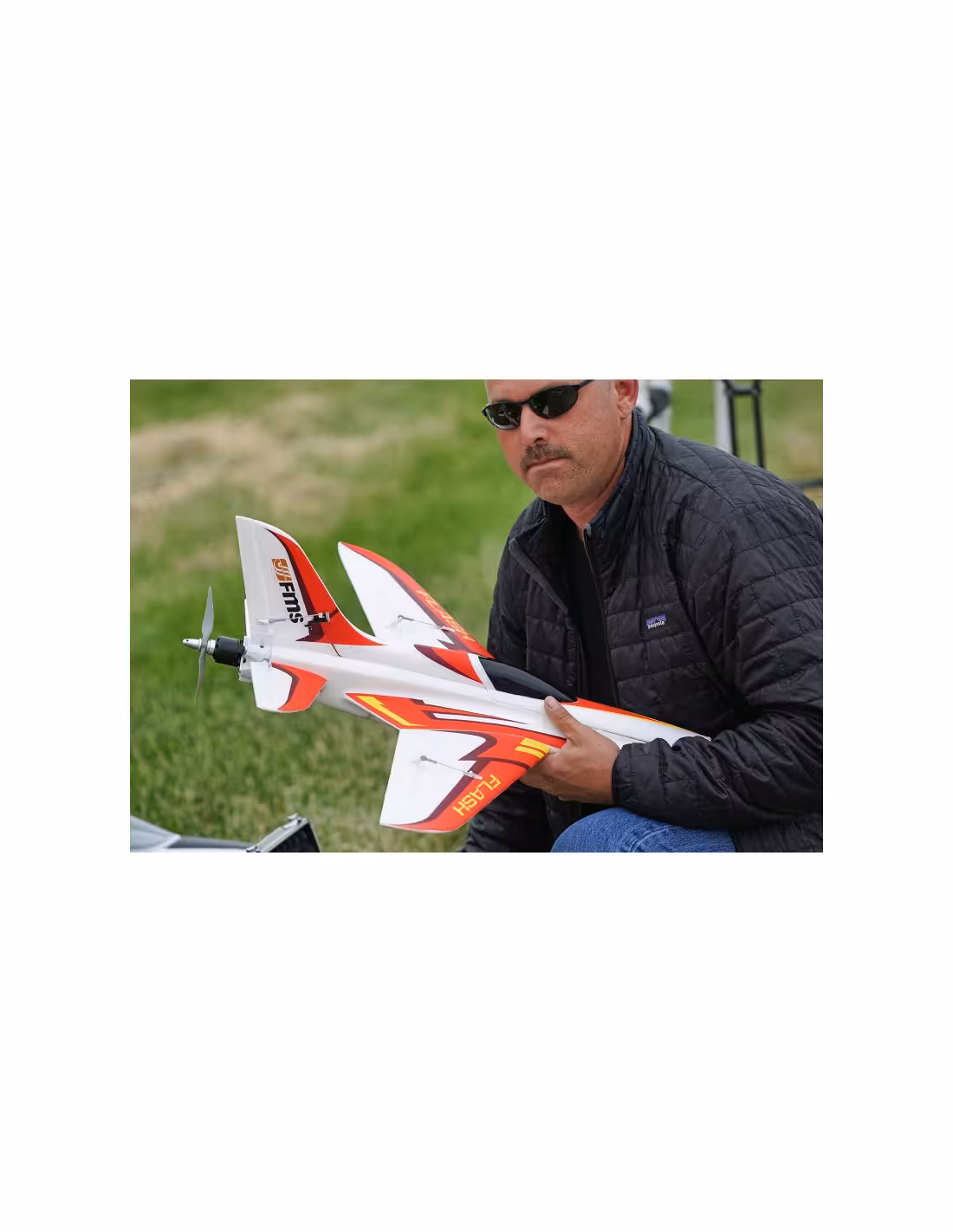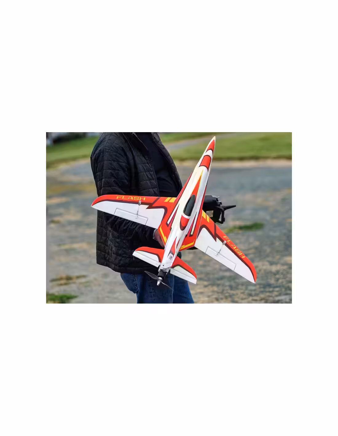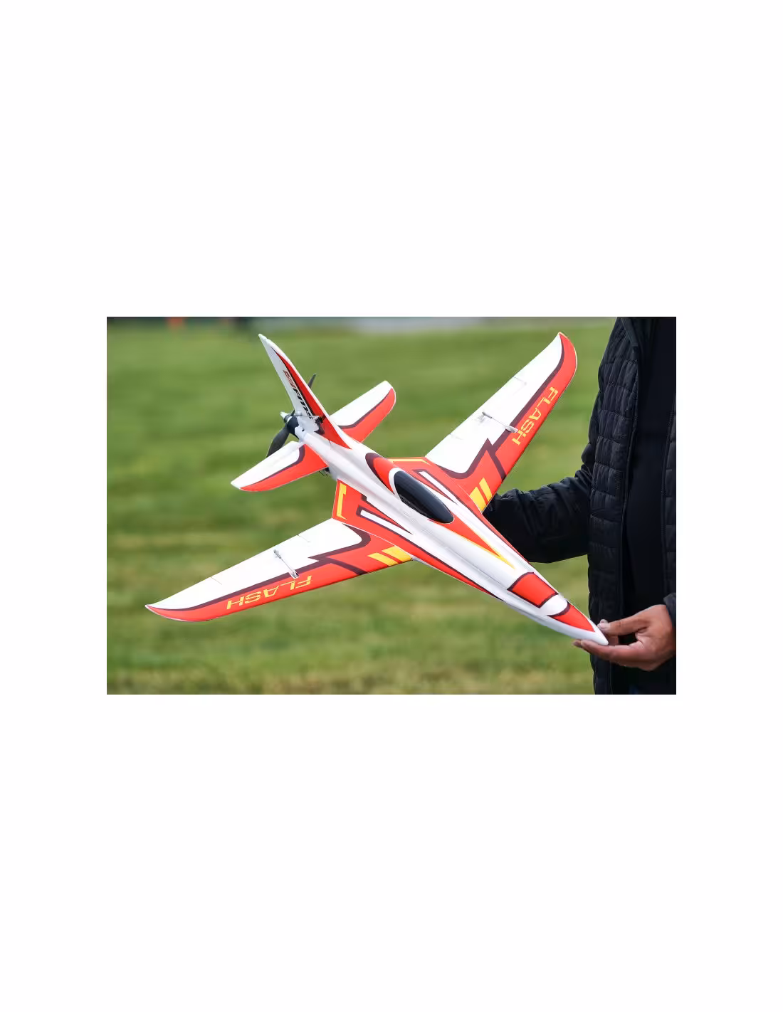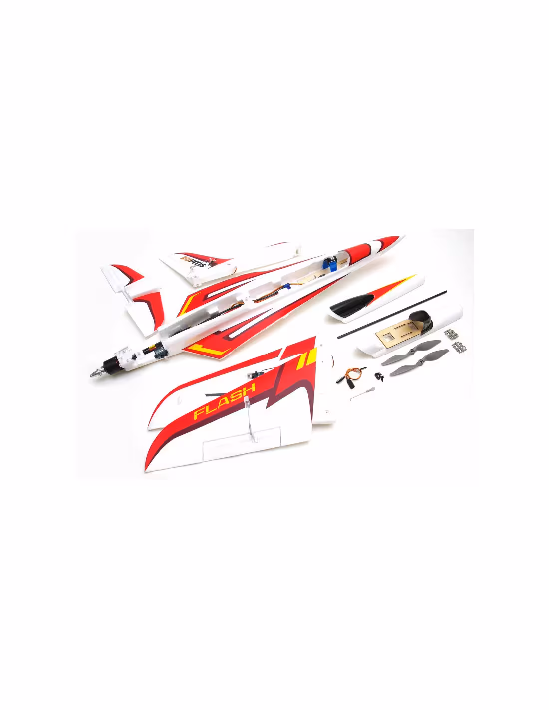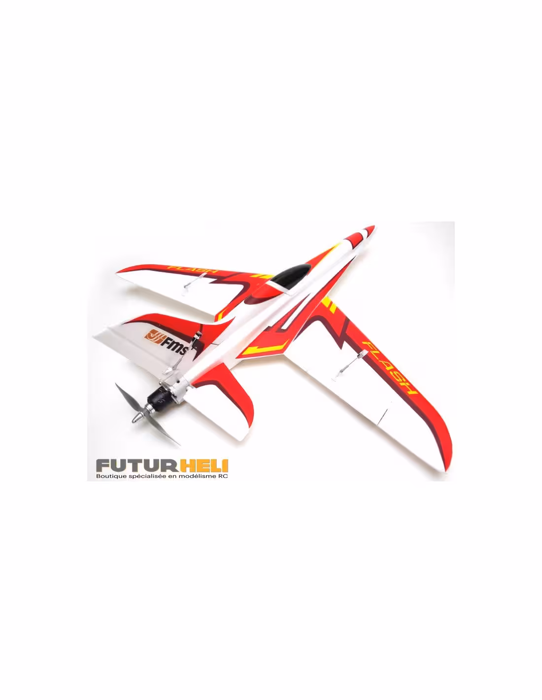 - Conçu pour minimiser la traînée, le fin et élégant fuselage du Flash FMS glisse dans l’air comme une balle, à une vitesse pouvant atteindre les 180 km/h ! Le fuselage renforcé et les ailes en flèche assurent une rigidité maximale de la cellule, même dans les conditions extrêmes.