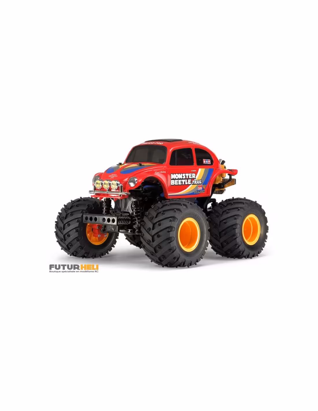 - Carrosserie moulée en résine ABS rouge reproduisant une Beetle customisée avec ailes surdimensionnées, trois antibrouillards et arrière tronqué.
