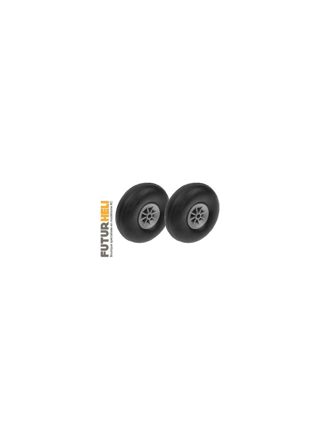Roue avion 70mm Axe 4mm (X2) pneus Caoutchouc jante nylon Revtec Futurheli