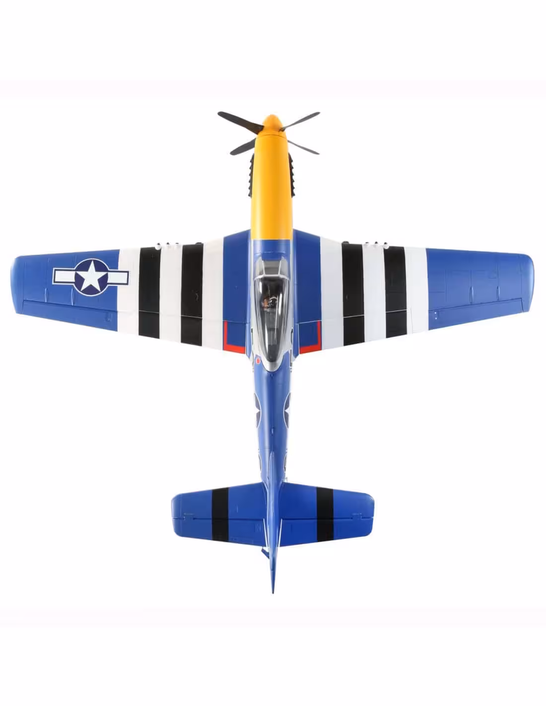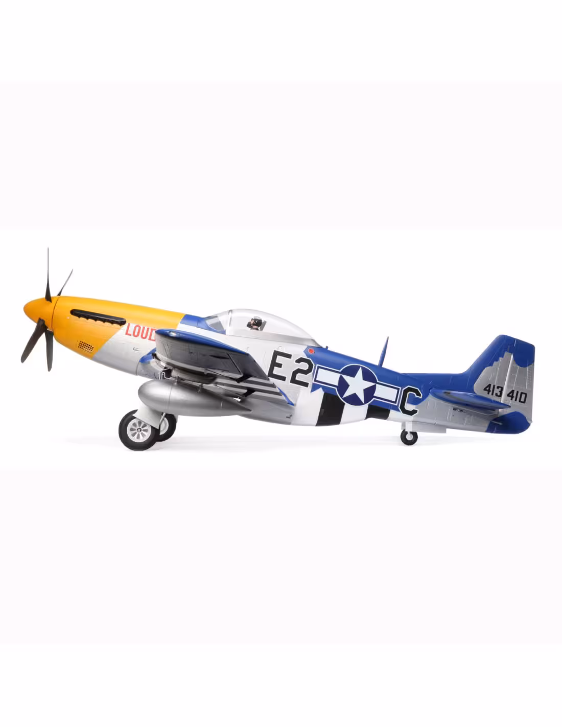 Le comité d‘enquête sur la guerre du Sénat Truman a dit que le Mustang P-51 de l‘aviation nord-américaine était „l‘avion de poursuite le plus aérodynamiquement parfait qui existe“. Pen- dant la Seconde Guerre mondiale, il a fait exploser des trains, des navires et des installations ennemies dans toute l‘Europe occidentale. La variante „ D „, équipée du légendaire moteur Merlin, a donné aux forces aériennes de l‘armée américaine un chasseur à haute altitude et à long rayon d‘action capa- ble d‘escorter des formations de bombardiers lourds jusqu‘à Berlin et retour. Le E- ite® P-51D Mustang 1,5m va également jusqu‘au bout - pour reproduire le célèbre chasseur avec des détails, une maniabilité, des performances et une présence ex- ceptionnels. Il regorge de détails et de caractéristiques foncti- onnelles Extra Scale, notamment des feux à DEL, des trappes de train d‘atterrissage séquentielles pour le train principal et le train arrière, des volets et bien plus encore, et il est également équipé d‘un SpektrumTM AvianTM Smart ESC pour o rir une ex- périence de vol inégalée aux ‘’Warbirds’’