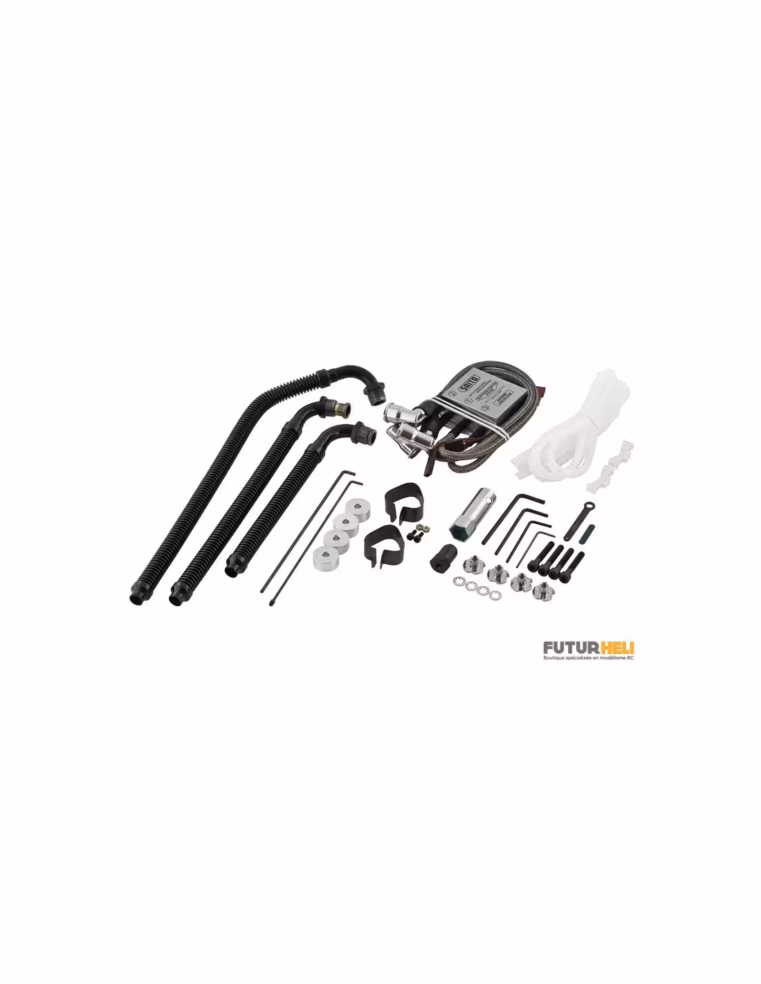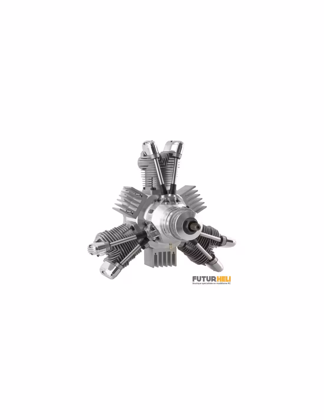 Saito FG-90R3 nouvelle cylindrée dans cette gamme de moteur en étoile, hélice conseillée 24x12, allumage électronique ensemble complet avec bâti moteur, bougies et système d'échappement flexible.Avec son couple elevé il est adapté aux avions maquette et au avions de voltige.Son poids est de 3161g (moteur seul) bâti 64g,allumage 250g et échappement 157g