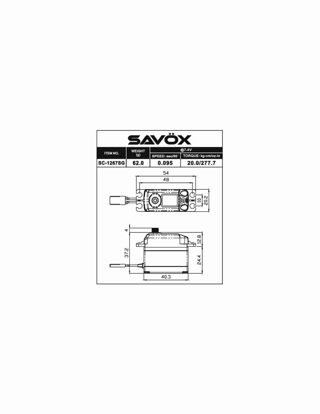 Servo Savox SC-1267SG digital 20kg sous 7,4v vitesse 0,095 sc 60° puissant et rapide il peut être installé dans de nombreux modèles ses qualités, numérique sur roulements pignons metal , HV "haut voltage" 20 Kg de puissance taille standard .
