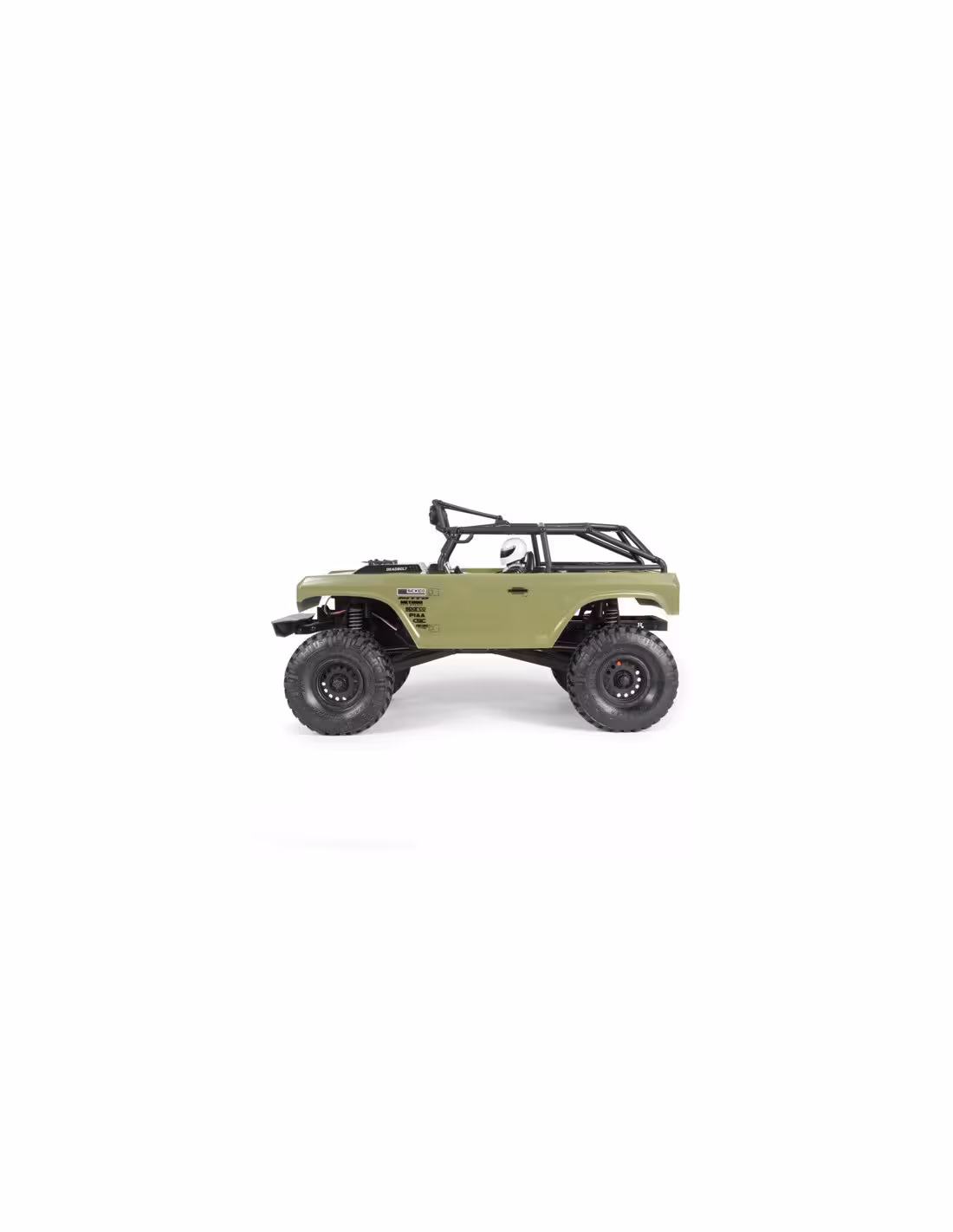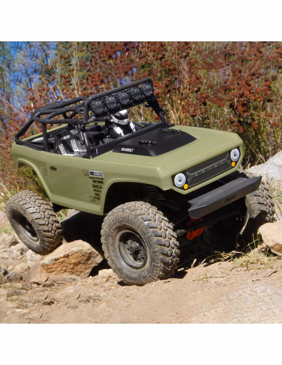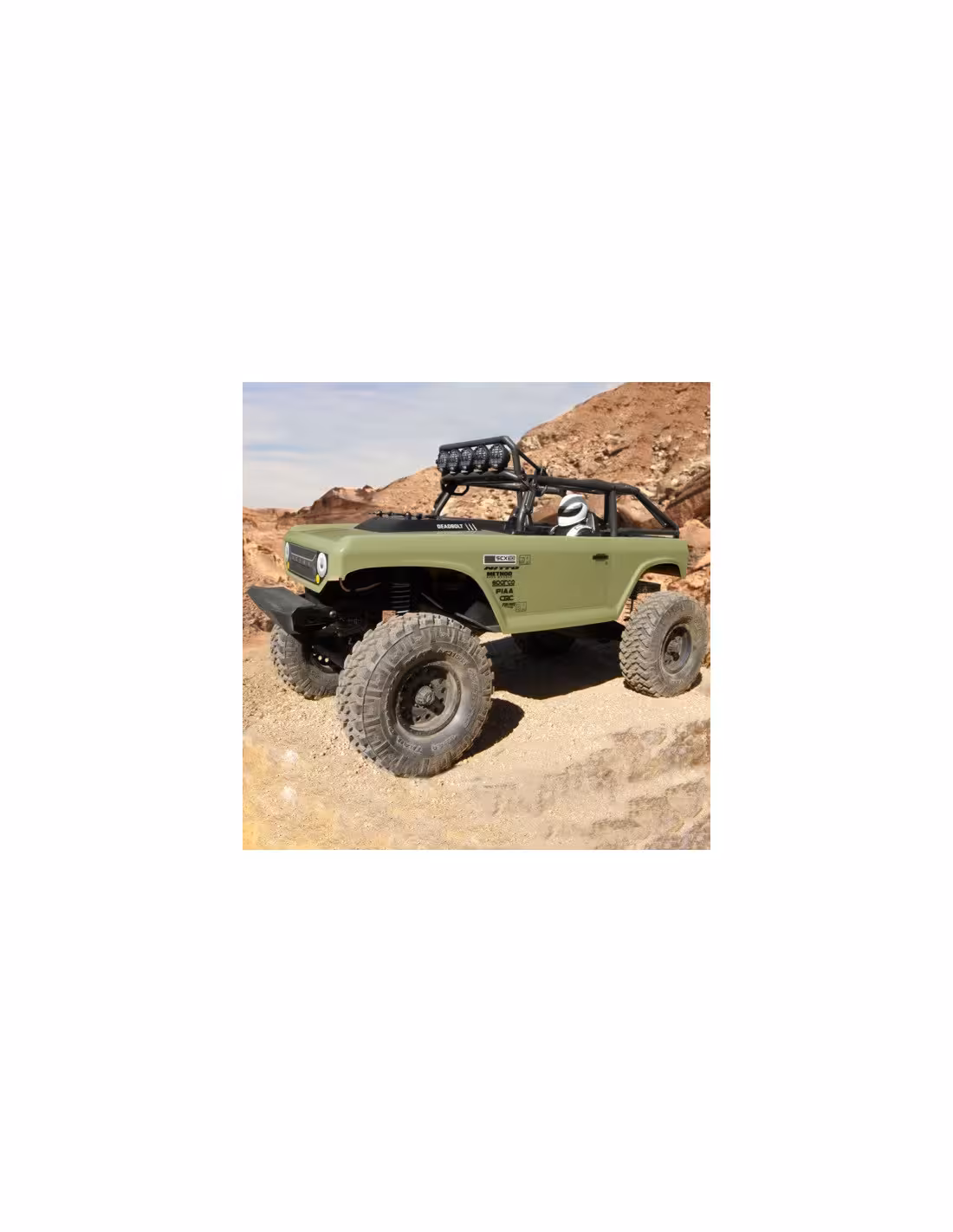 Axial Deadbolt SX10 nouveau châssis II , Le Crawler le plus connu de la gamme avec son arceau cage et sa carrosserie couleur Olive ,il est livré avec sa radio-commande en 2,4 ghz son moteur et son contrôleur ce modèles est un redoutable franchiseur et il vous permettra d'accéder sur la plus haute marche des podiums.