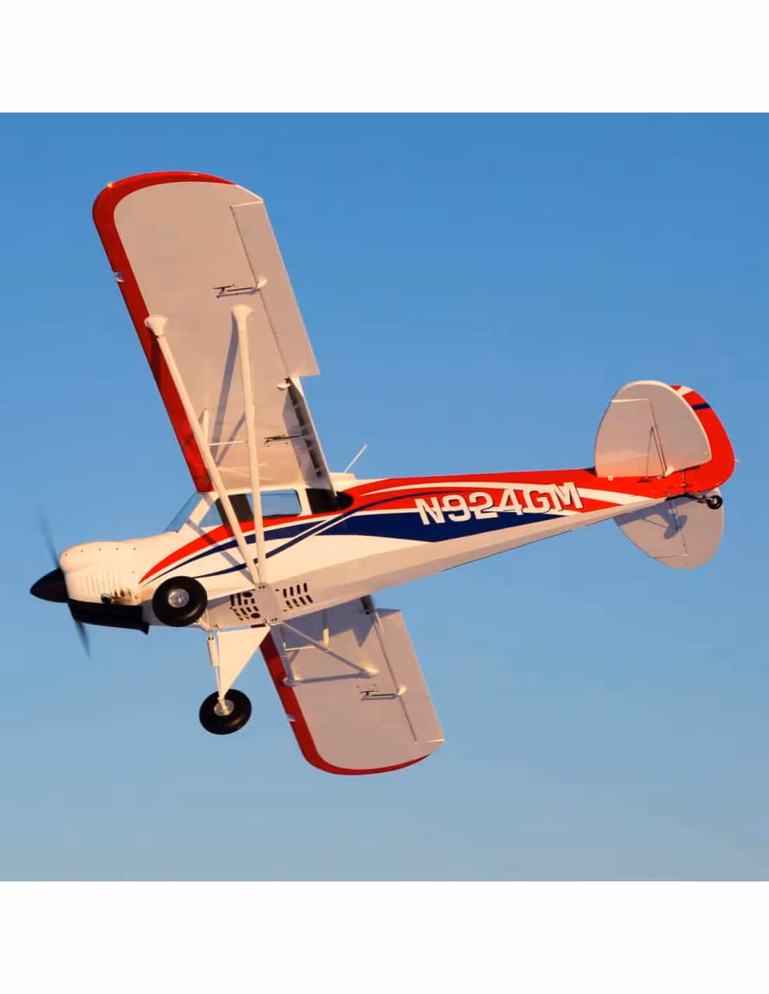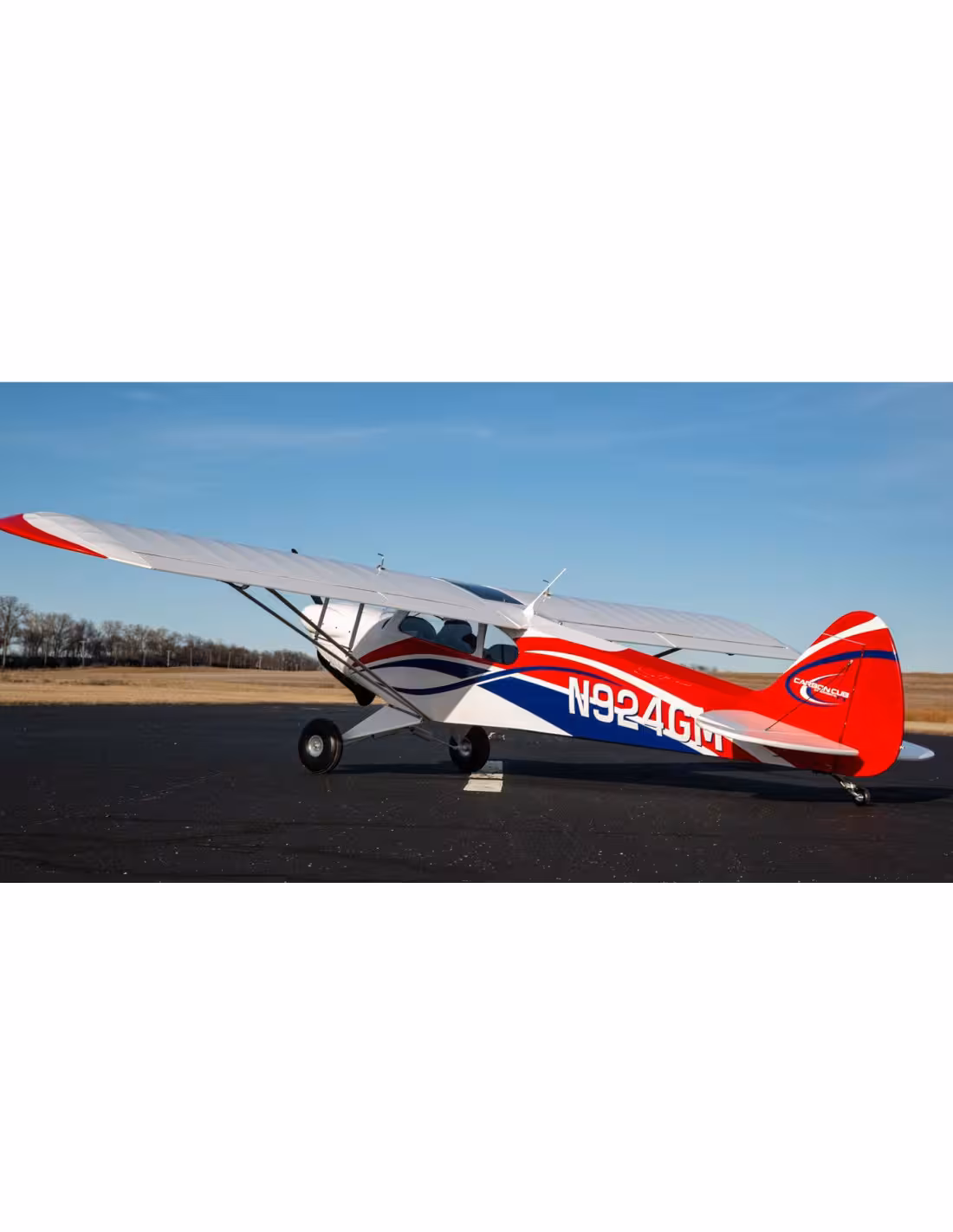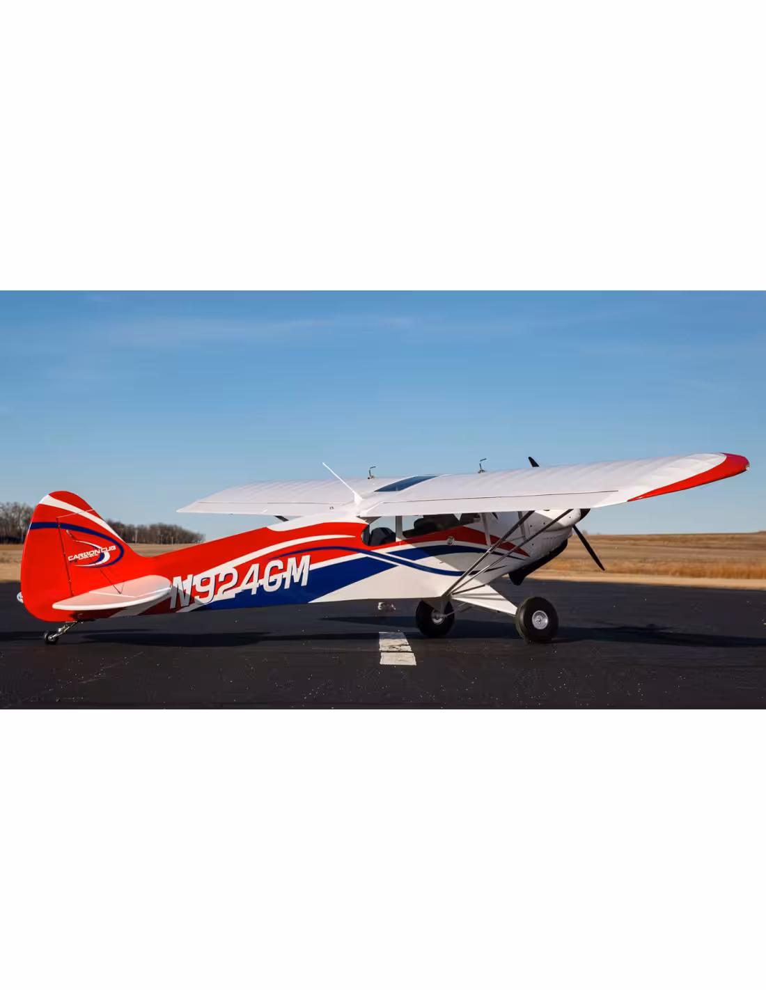 Hangar9 Carbon Cub FX-3 d'une envergure de 4,20m, des roues de 21,5 cm,une motorisation jusqu'à 200 cc fait de cette avion le modèle le plus gros en ARF.Construction traditionnel en bois balsa pou un poids minimum .Cockpit détaillé et éclairage led grande intensité aliment par batterie lipo 3S .