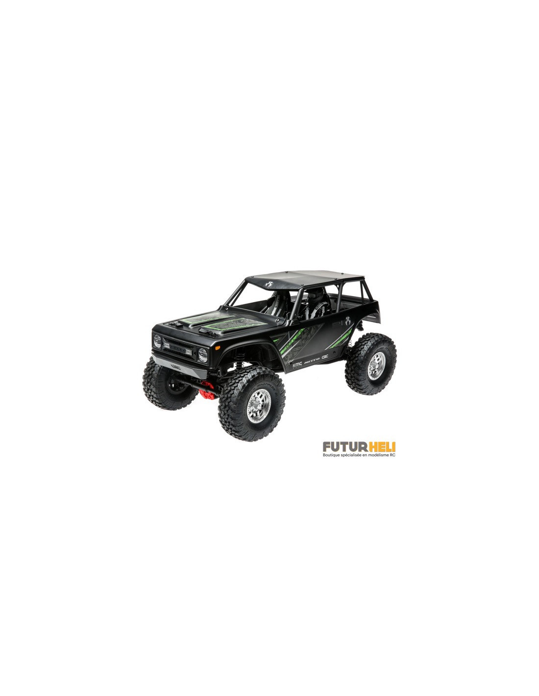 Nouvelle version de l'axial Wraith avec un diamètre de roues augmenté à 1,9 pouces un véhicule 4WD fait pour le franchissement rien de lui résiste boue rocher etc, livré RTR avec sa radio de marque Spektrum a vous d'ajouter l'accu de votre choix pour compléter cet ensemble .