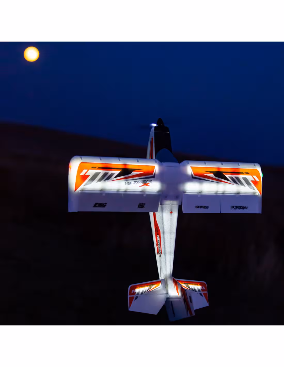 Timber X "night" encore plus fou, éclairage de jour et de nuit, il possède des ailerons et des volets sur-dimensionnés pour des atterrissage "courts" les qualités de vol de la gamme Timber n'est plus à faire avec sont système Safe et son récepteur AS3X il vol parfaitement dans toutes le conditions météo . version "Basic" sans la batterie de propulsion.