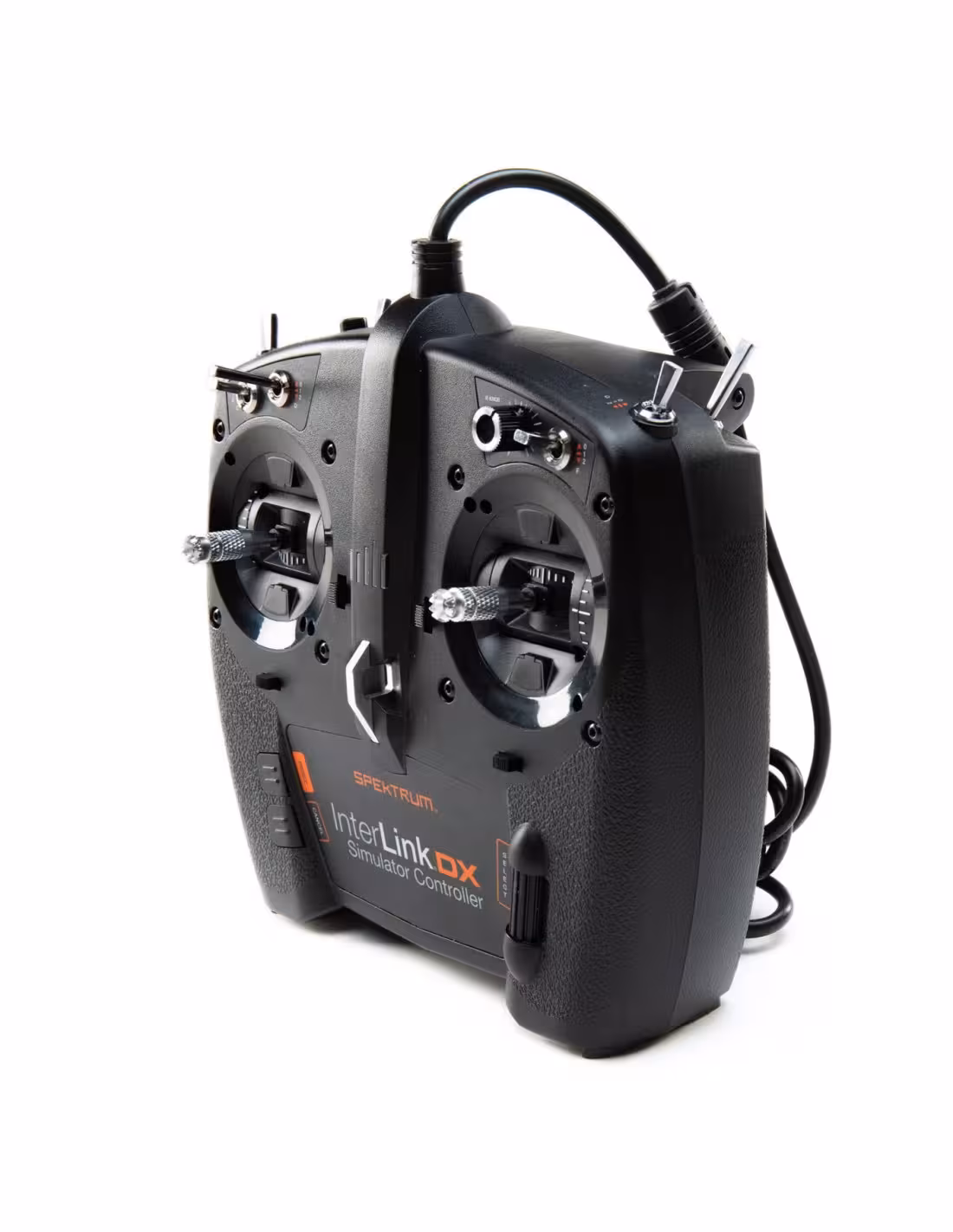 - Radio-commande Interlink DX avec prise USB pour simulateur type Real Flight ou autre compatible window "plug and play" évitez d'user votre radio de terrain en faisant du simu cette radio aura les mêmes réactions , vous pourrez la laisser près de votre PC ? elle sera prête tout le temps.
