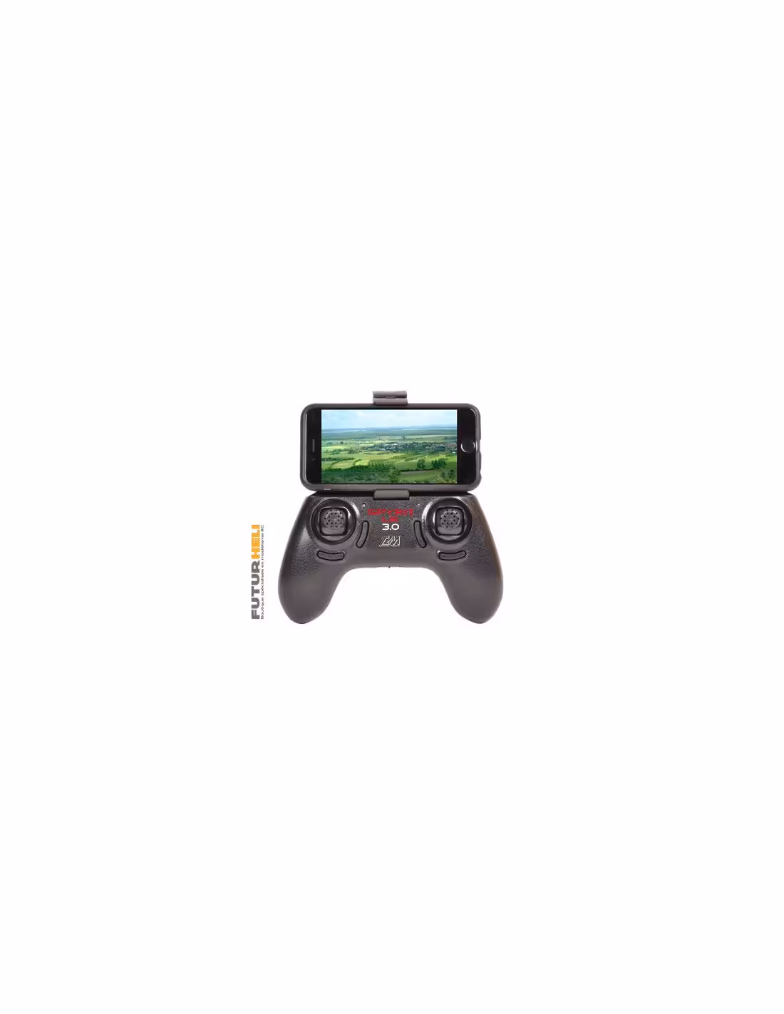 Possibilité de piloter avec un téléphone ou une tablette ! (Sticks sur écran ou Move Motion)
