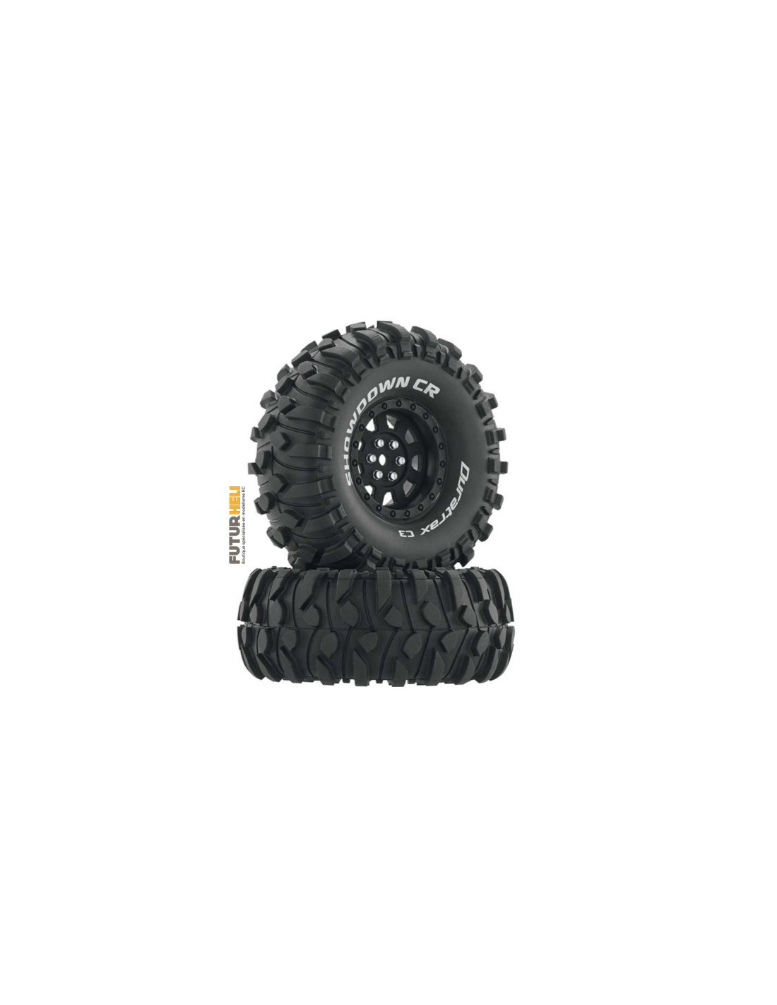 - «Showdown CR» et «Duratrax C3» en lettres blanches sur le flanc