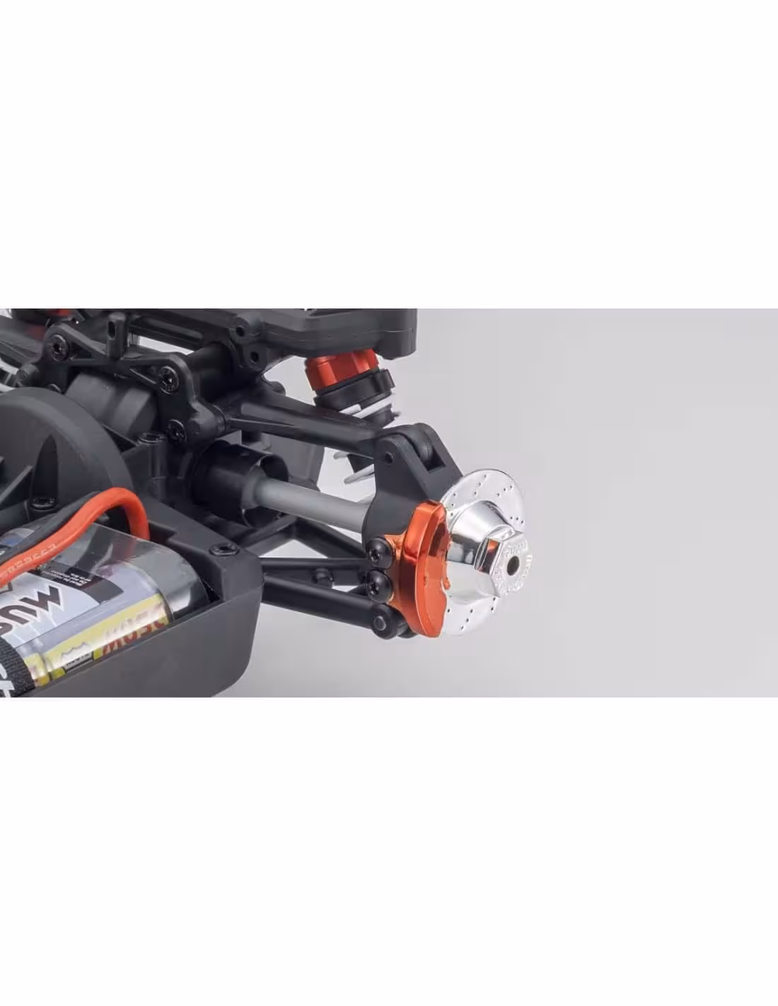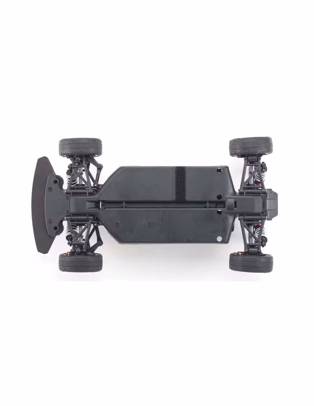 - De plus, la conception symétrique du châssis assure une excellente balance avant-arrière avec la suspension et un contrôle réactif, quelle que soit la source d'alimentation. Dotée d’un embrayage à glissement, de différentiels, d'amortisseurs hydrauliques et de roulements à billes. Les moyeux de roue de disque de frein avec deux déports différent (0mm, + 5mm) sont compatibles avec les styles de carrosserie de 190 mm et 200 mm de largeur et permettent de régler l'empattement à 260 mm en remplaçant certaines pièces (vendues séparément) afin d'assurer la compatibilité avec d'autres types de carrosserie à l'échelle 1/10. L'ensemble Readyset est livré entièrement assemblé et comprend tout sauf le chargeur et la batterie pour le châssis et les batteries pour l'émetteur.