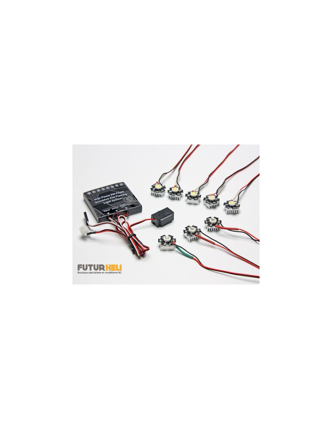 - Ensemble complet puissant pour l'éclairage d'avions ou d'hélicoptères. Jusqu'à 8 LED colorées entièrement câblées (allumées, clignotantes, clignotantes) peuvent être branchées sur le contrôleur fourni. Vous pouvez basculer jusqu'à 8 modes différents à distance via un canal de commutation sur votre émetteur de télécommande.