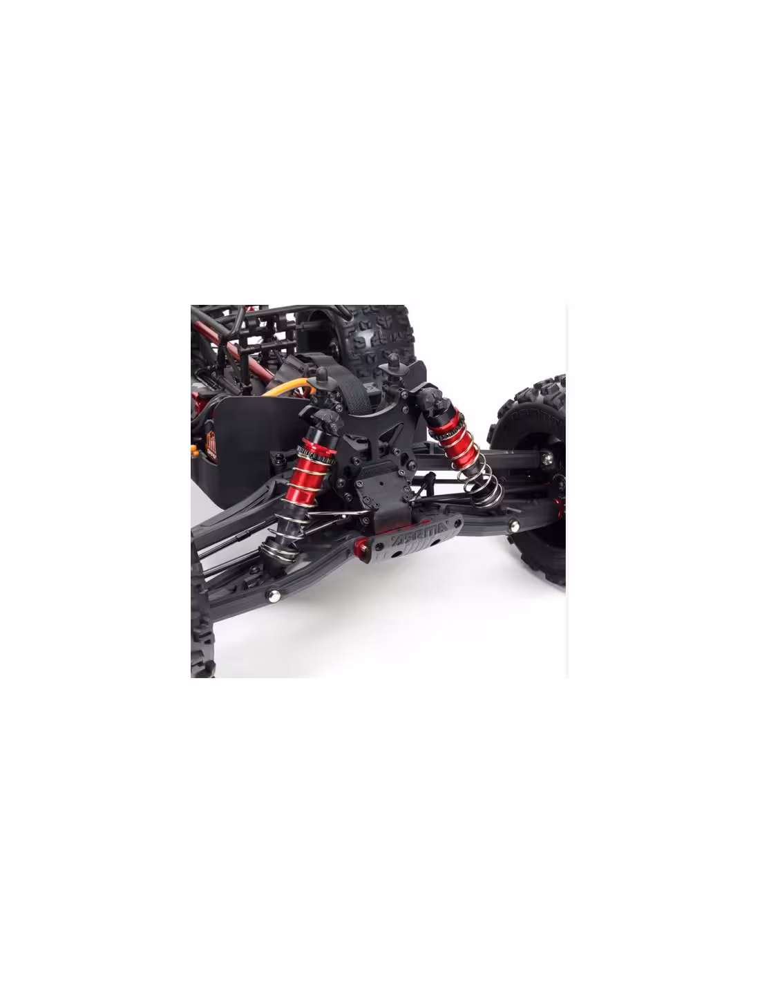 Pour la longévité nécessaire au soutien d'une performance intense brushless, ARRMA® utilise un châssis en aluminium anodisé renforcé comme base pour le KRATON™ 6S BLX 4WD. Un support central de carrosserie, un renfort central en aluminium et des pods latéraux en composite du châssis ajoutent encore à la résistance. Des différentiels et des boîtes de vitesses entièrement métalliques, ainsi que des arbres de transmission solides en acier, assurent une transmission fiable et robuste qui résiste aux chocs extrêmes à grande vitesse. Un servomoteur de direction en aluminium "jamais desserré" et des embouts à rotule "jamais éclatés" apportent plus de précision, de fiabilité et de confiance.
