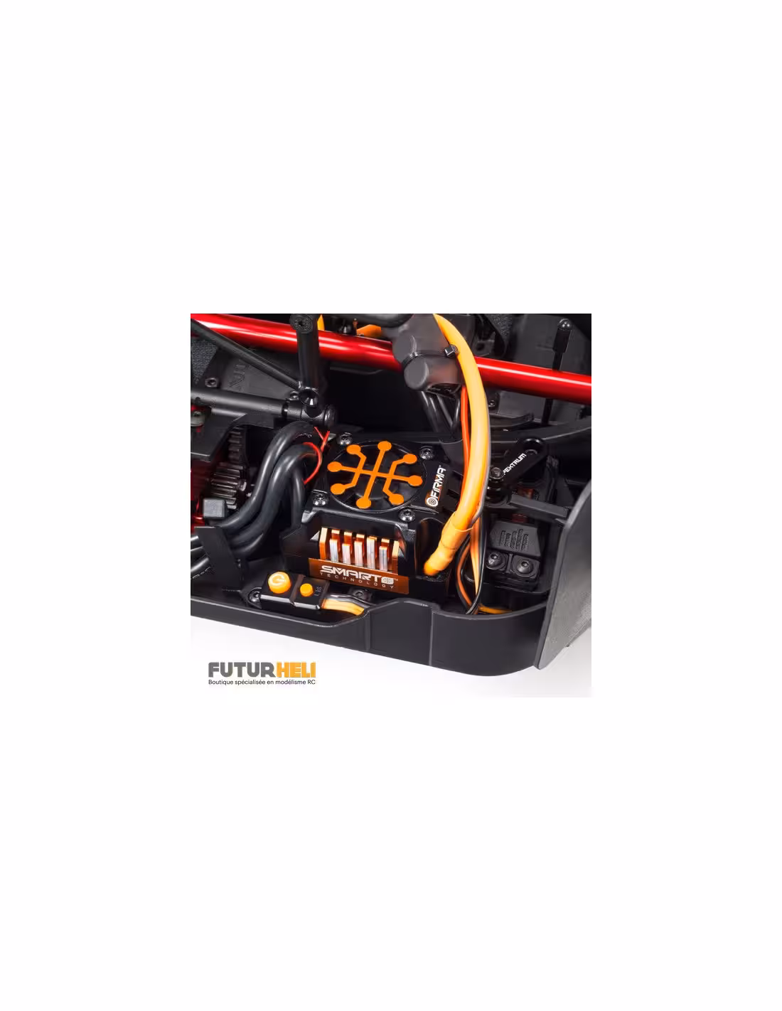 Le pack prêt à l'emploi comprend maintenant aussi une radio à 3 canaux Spektrum™ SLT3™ et un récepteur à double protocole Spektrum™ SR315. Parfait pour de longues heures de bashing sans fatigue, le design ergonomique de l'émetteur comprend un volant en mousse pour un contrôle précis du bout des doigts et une meilleure prise en main et sensation de la gâchette. Si vous êtes un nouveau conducteur, vous pourrez régler les limites de l'accélérateur à 50% ou 75% jusqu'à ce que vous soyez prêt à utiliser tout le potentiel de la vitesse. Le site SLT3™ est compatible avec les récepteurs Tactic® SLT™ pour faire fonctionner d'autres véhicules RTR que vous pourriez posséder, et comprend un troisième canal pour contrôler des fonctions optionnelles telles que les feux et les treuils sur les modèles qui en sont équipés.Comme le récepteur SR315 peut utiliser les protocoles SLT™ et DSMR®, vous pouvez facilement passer à un émetteur DSMR® Spektrum™ plus tard - alors, téléchargez l'application gratuite Spektrum™ Dashboard™pour votre appareil mobile et profitez pleinement des capacités de télémétrie intelligente déjà présentes dans l'électronique Firma™. Vous pourrez recevoir des mises à jour en temps réel de la température de l'ESC, de la tension du récepteur (BEC), de la tension du bloc d'entraînement et du régime moteur.