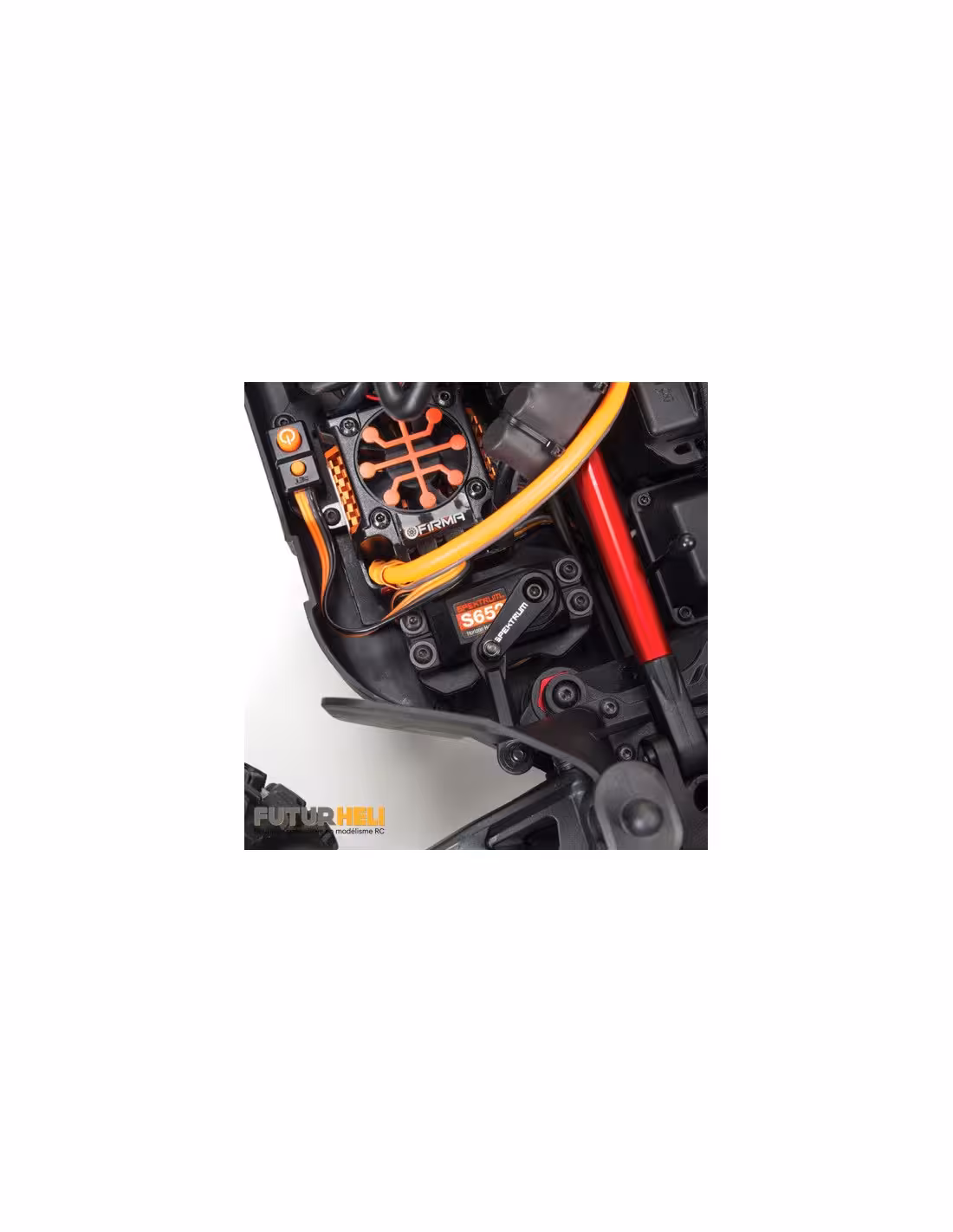 ARRMA® réduit au minimum les temps d'arrêt pour la maintenance grâce à une conception efficace et conviviale pour le conducteur. Un support coulissant permet un accès rapide et sans problème au moteur. Le différentiel central est facile à atteindre et peut être retiré en retirant seulement cinq boulons. Pour couronner le tout, la carrosserie du monster truck a une belle apparence profilée, avec une garniture rouge/noir ou bleu/noir accrocheuse et des autocollants détaillés.