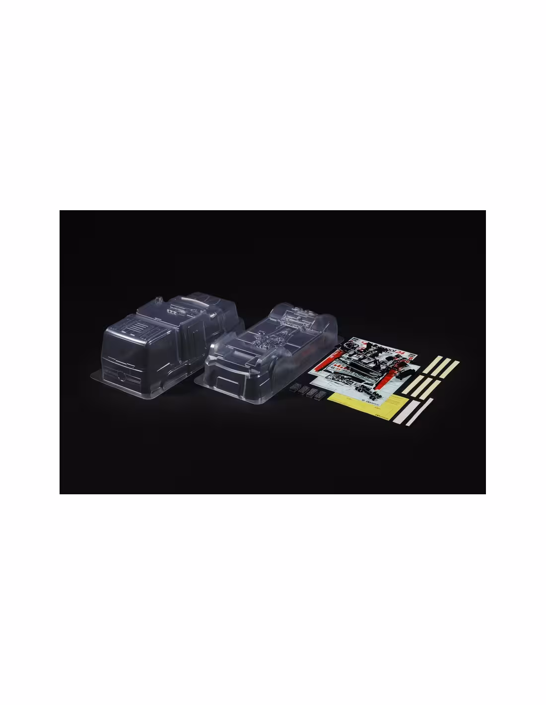 Carrosserie en lexan Tamiya 51654 du camion Mercedes Actros Tankpool MPA,livré avec les autocollants. Prévoir de la peinture Lexan tamiya à peindre depuis l'intérieur .